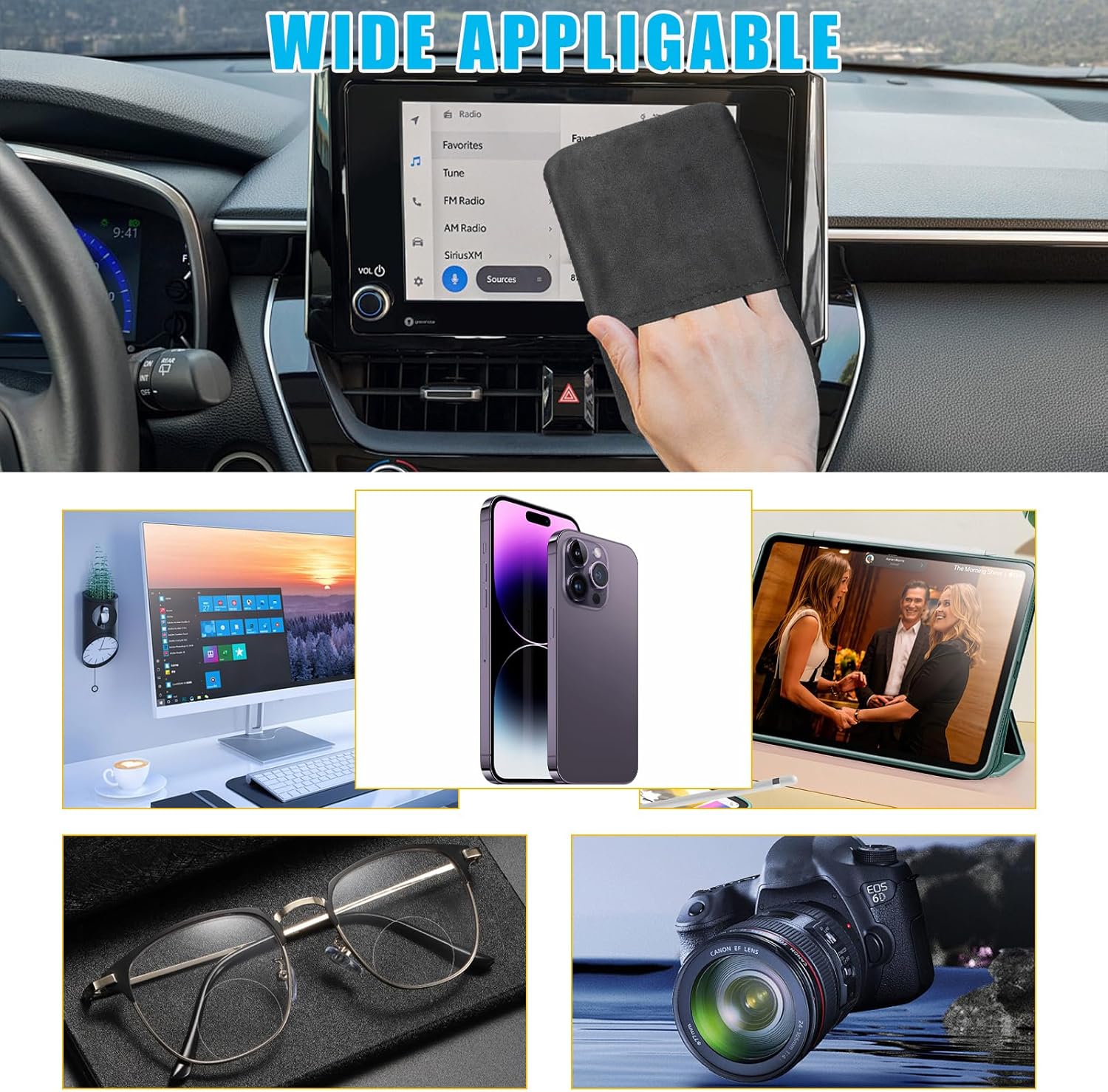 【Wide Application】: This cleaning cloth is very versatile. It can be used not only for car dashboards, displays and so on, but also for tablets, mobile phones, laptops, TVs and other electronics. It is very portable so you can carry it with you for easy access at any time.