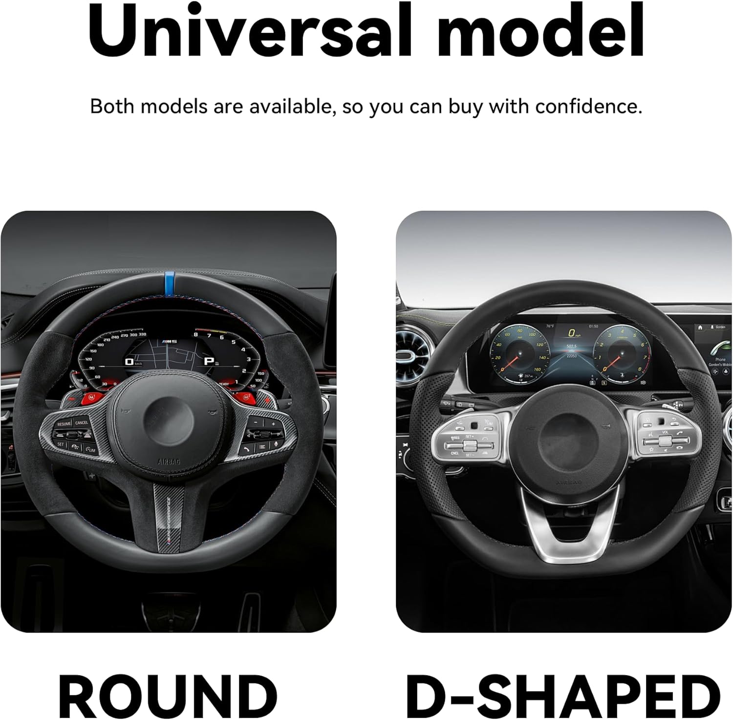 【Carbon Fiber Leather】: High-quality carbon fiber leather material, with wear-resistant, anti-slip properties, more durable in daily use, give you a stronger grip when driving, no longer worry about hand slip, ensure driving safety. The soft leather material not only protects your steering wheel, but also provides you with an excellent touch and reduces driving fatigue.