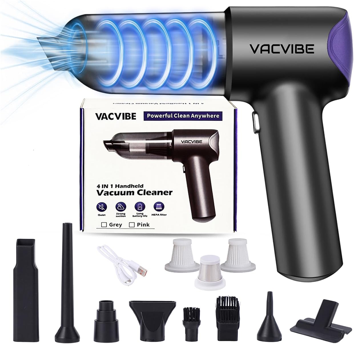 Wide Application:The Vacvibe vacuum cleaner comes with a wide range of accessories for both blowing and vacuuming needs. You can use it to easily blow away dirt, crumbs, dust and other particles from the surface of items, as well as vacuuming out tiny stubborn dirt hidden in keyboards, nooks and crannies. It can also be used to clean houses and vehicles, as well as inflate life preservers or airbeds, and it can be used as a compression bag pump, among other things.