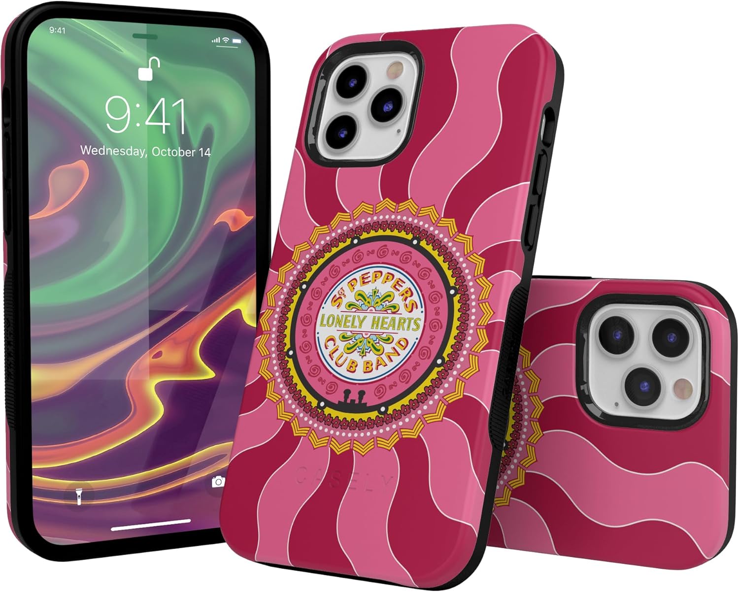 Celebrate Sgt. Pepper’s with Lonely Hearts Club | The Beatles Sgt. Pepper’s Case. Transport your tech into a realm of vibrant color and rep one of the greatest albums of all time. Built to protect your phone, this Beatles x Casely case fits securely around the responsive embossed buttons and has raised edges to provide phone and camera protection while remaining lightweight. For drops and tumbles, this case helps ensure premium phone protection. Available in a variety of iPhone sizes.