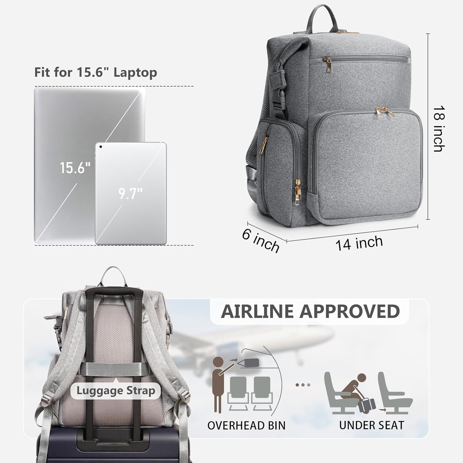 Comes with Diaper Changing Pad: Our baby diaper backpack for boys and girls comes with a 27.15″ x 27.15″ portable changing pad. The waterproof surface is easily cleaned with sanitizing wipes, adding convenience for travel