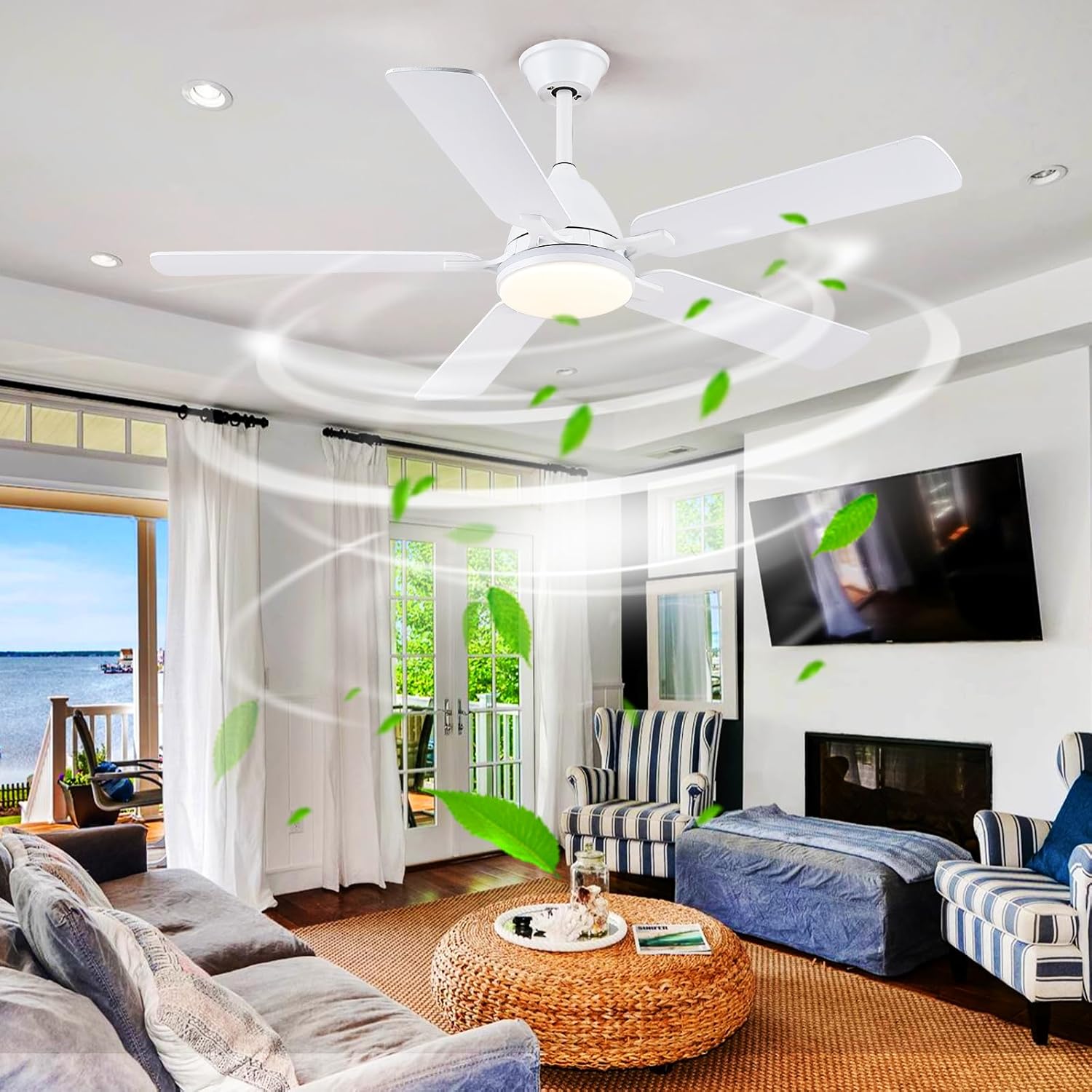 Ceiling Fans with Lights, 52 Inch Low Profile Ceiling Fan with Light and Remote Control,Reversible,RGB,3CCT, Dimmable,Quiet,White Ceiling Fan for Bedroom Indoor/Outdoor Use