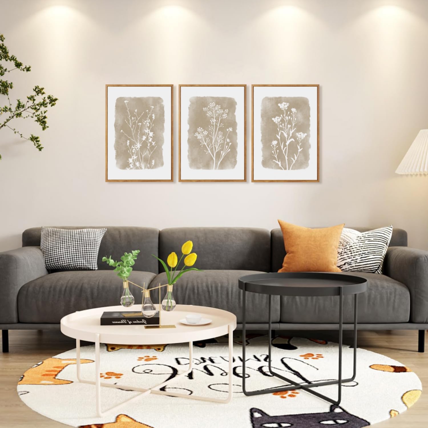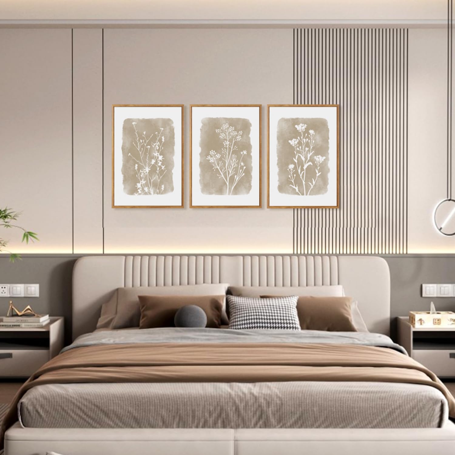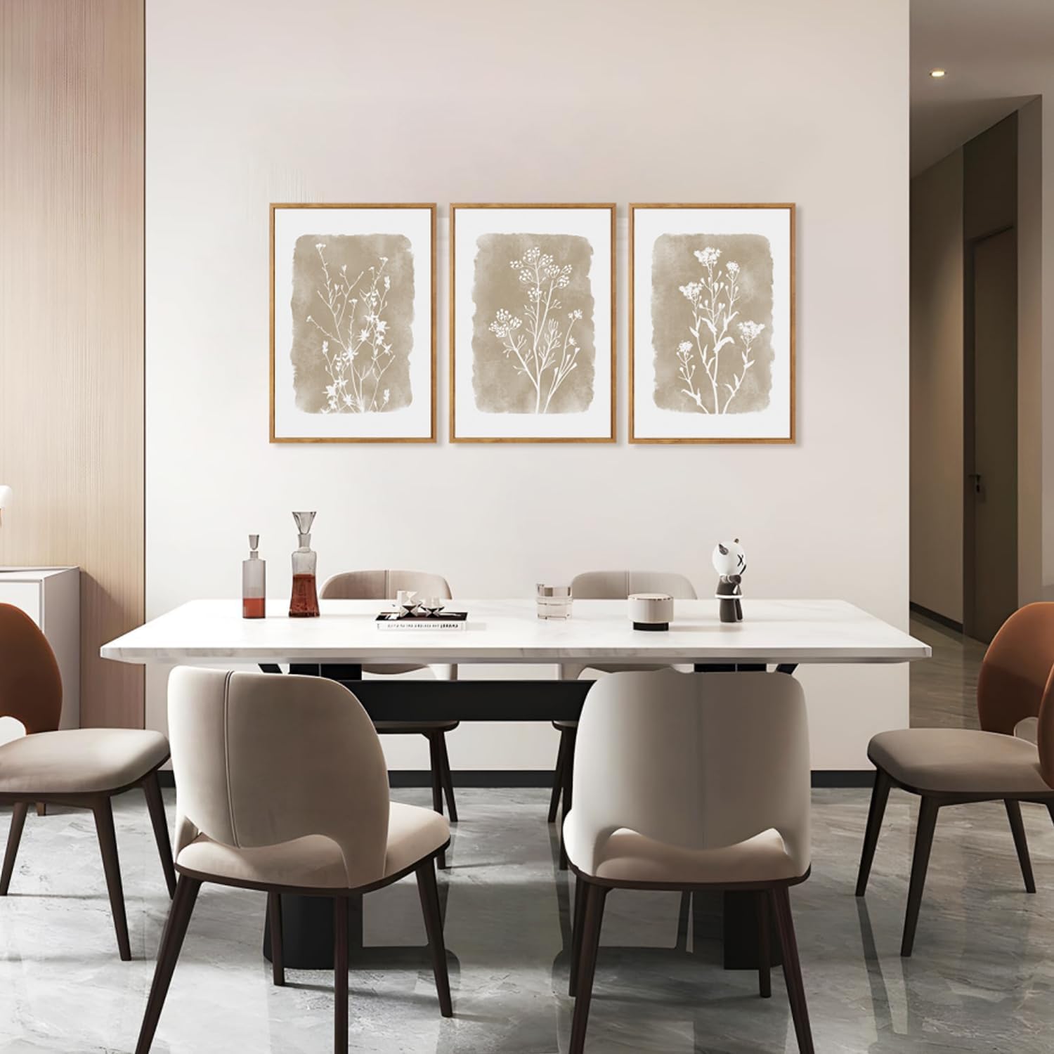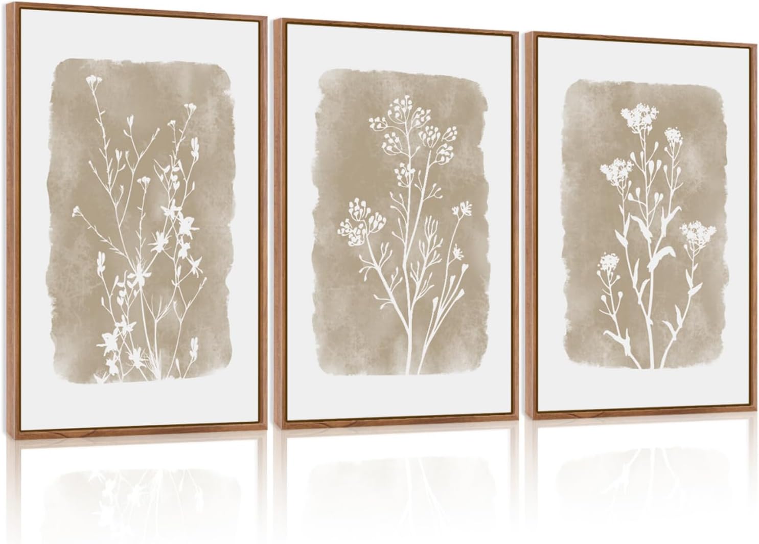 CHDITB Botanical Farmhouse Wall Art Set, Framed Boho Plant Wall Decor, Neutral Minimalist Floral Wall Painting, Rustic Wildflower Canvas Art Prints for Living Room, Bedroom, Bathroom – Large 16″x24″x3