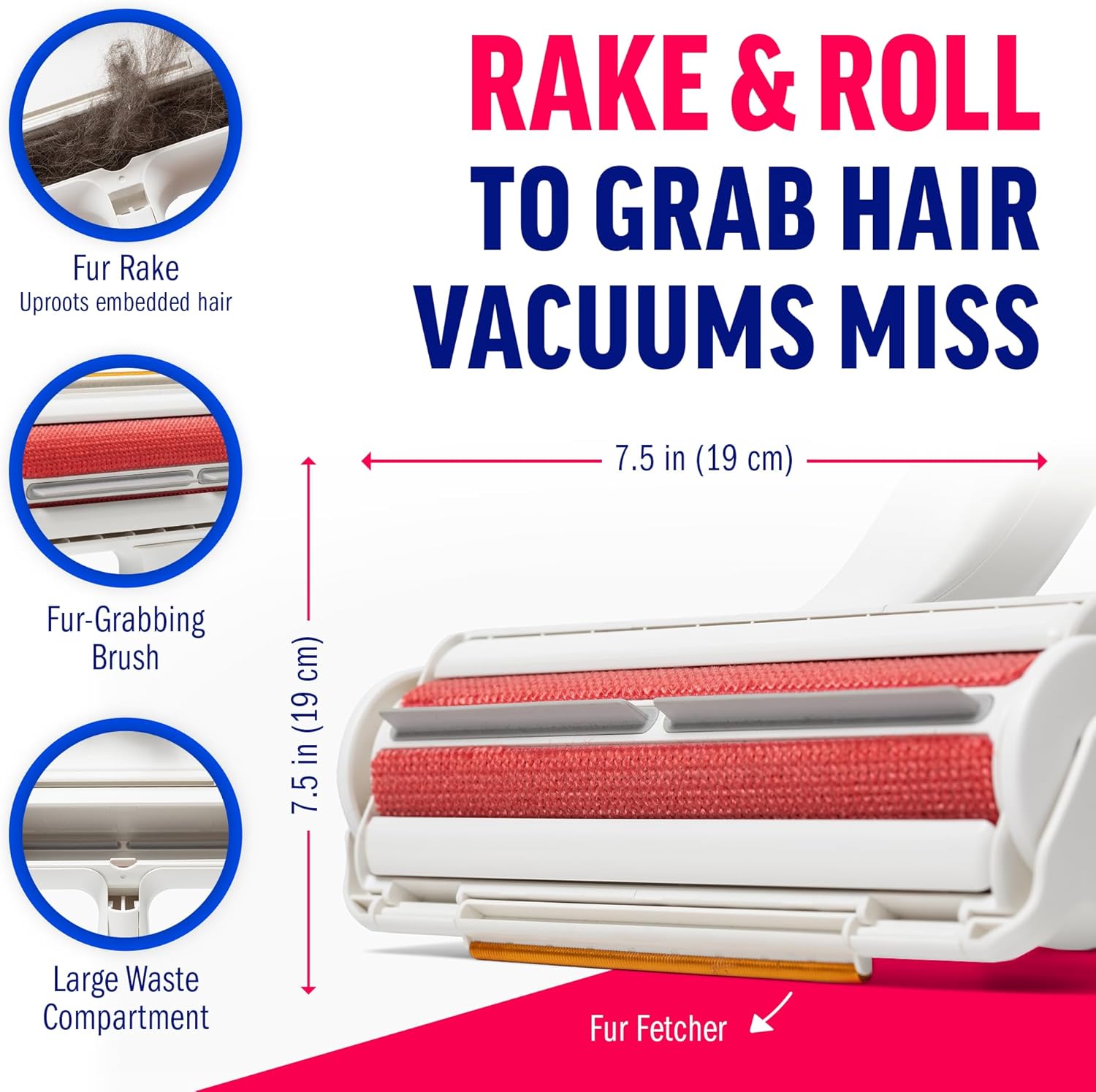 EASY, MESS-FREE USE: Simply rake to lift hair, then roll rapidly to collect it into the built-in receptacle. When finished, press the release button to empty—no refills, no cleanup hassle.