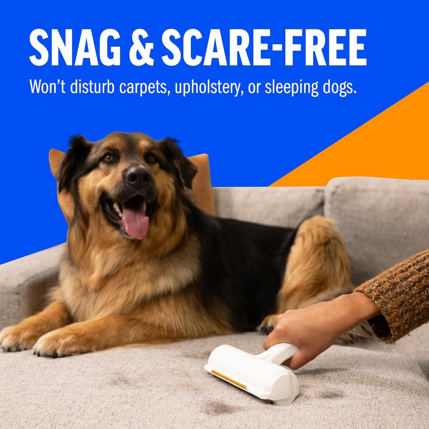 MADE FOR REAL LIFE MESS: Effortlessly remove pet hair from couches, pillows, carpets, car seats, and pet beds. The built-in rake helps loosen stubborn hair, while the rolling motion captures it—no vacuum required.