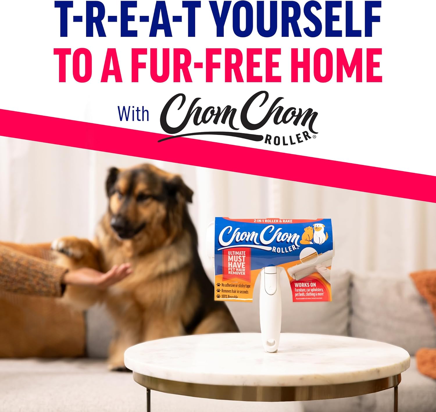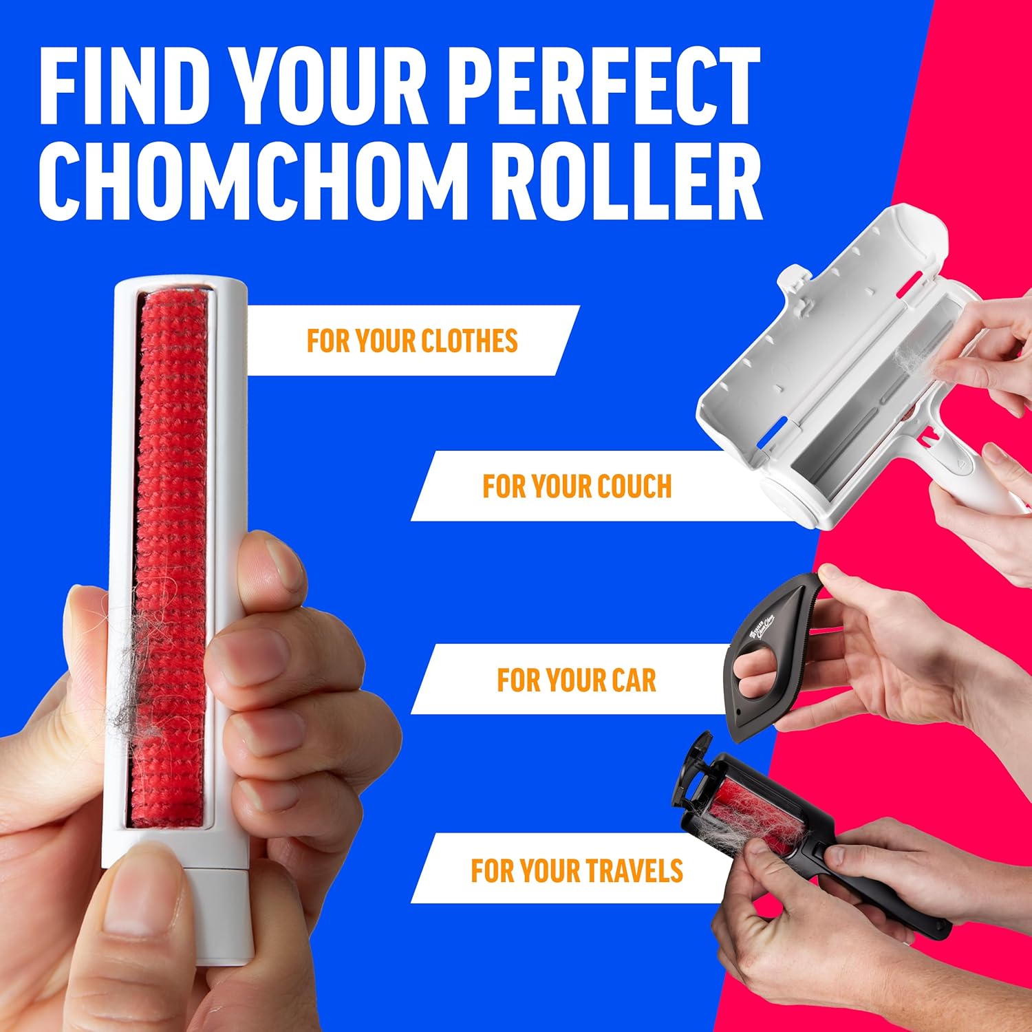 ChomChom Roller & Rake – Reusable Pet Hair Removal Roller with Rake Attachment for Cat & Dog Fur on Furniture, Couch, Carpet, Car, Rugs, Bedding & More– Portable, Eco-Friendly
