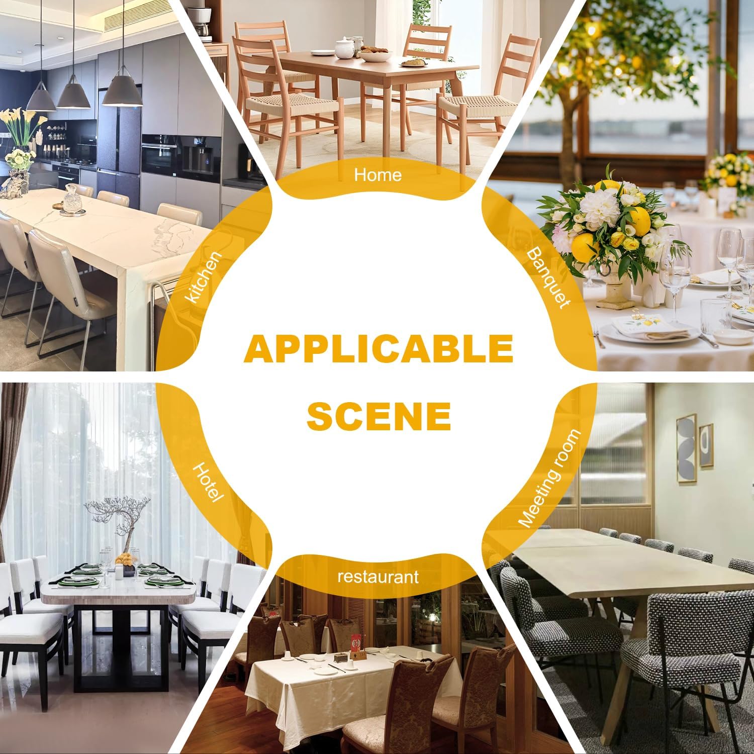 Widely Usage: The dining room chair covers fit most parson chairs, It can be used for hotel, wedding banquets, dinners, meetings, celebrations, ceremonies, family dining room decorations, etc