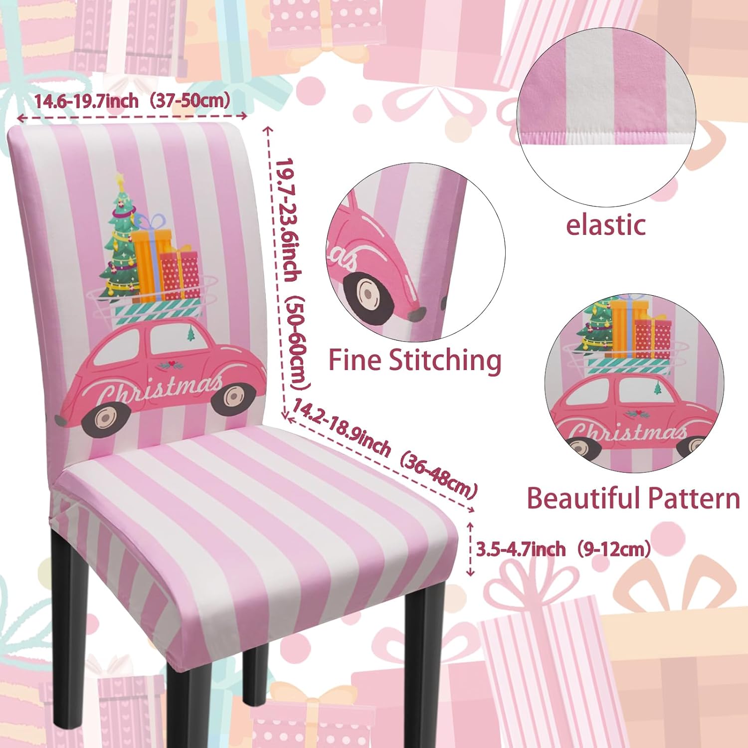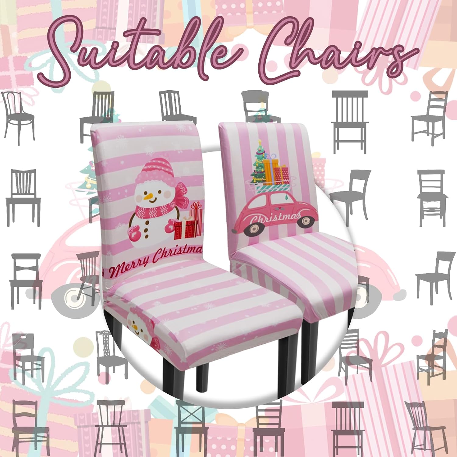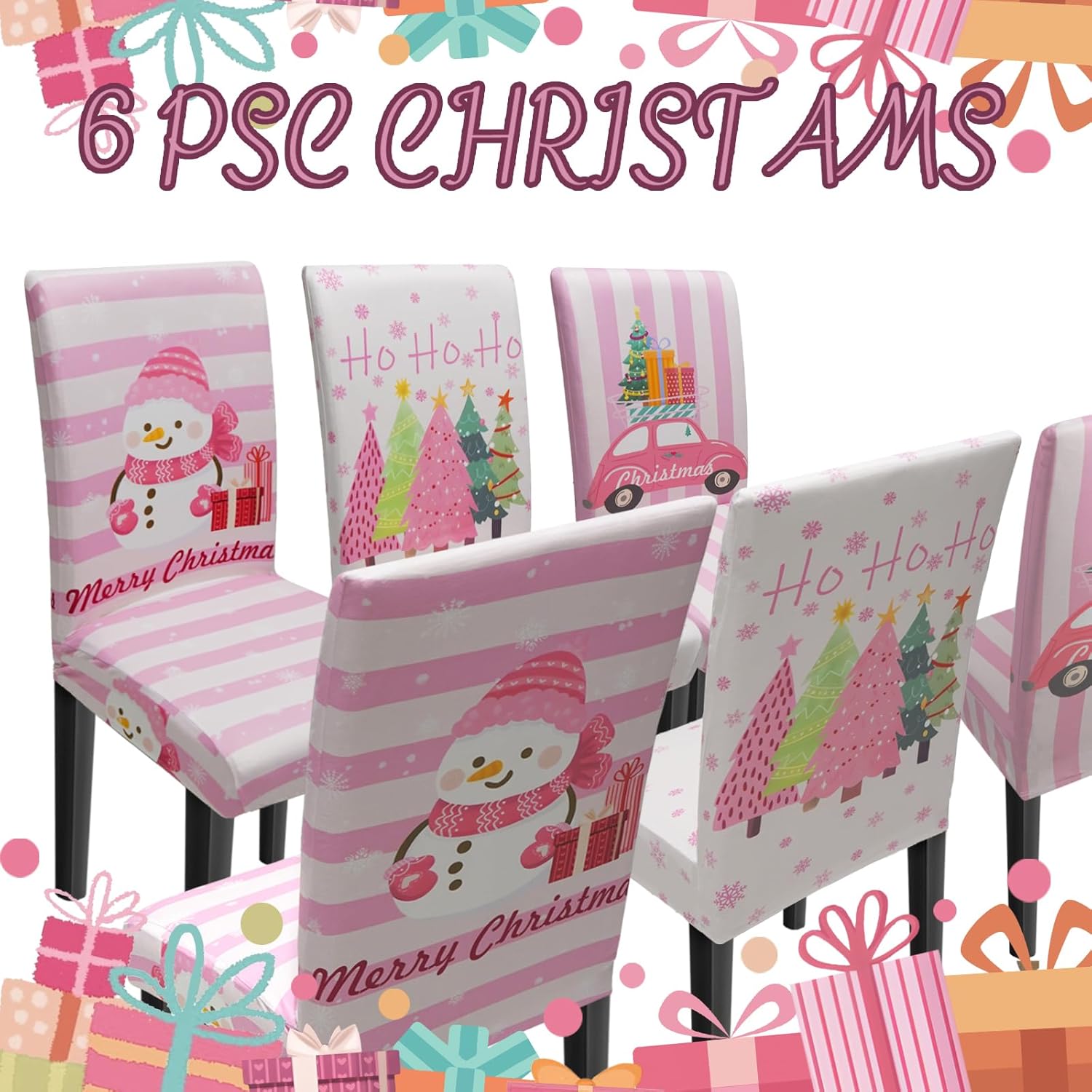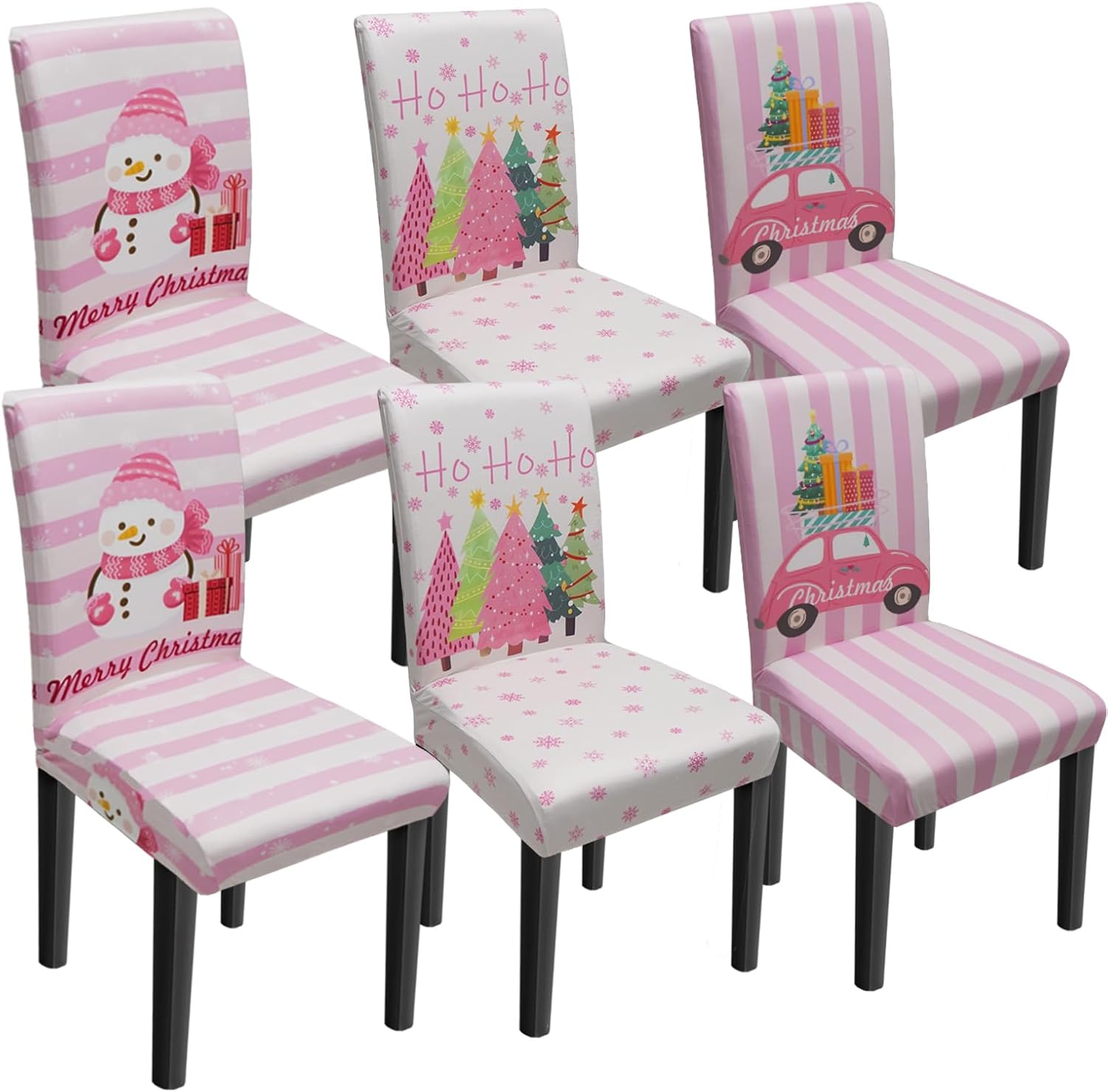 Christmas Chair Covers Set of 6, Xmas Tree Snowman Dining Chair Covers for Party Kitchen Removable Seat Cover for Chairs Christmas Decorations Indoor