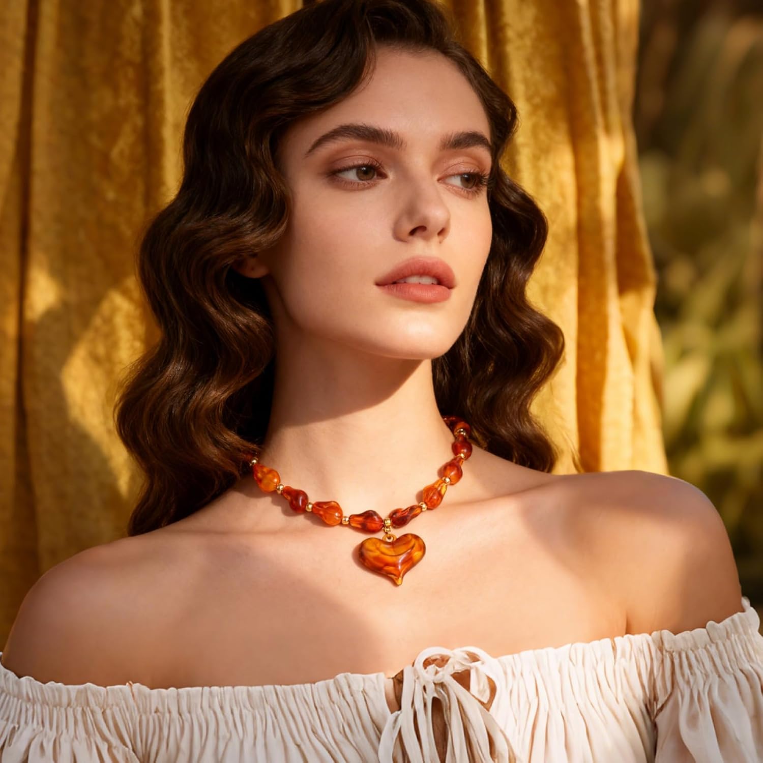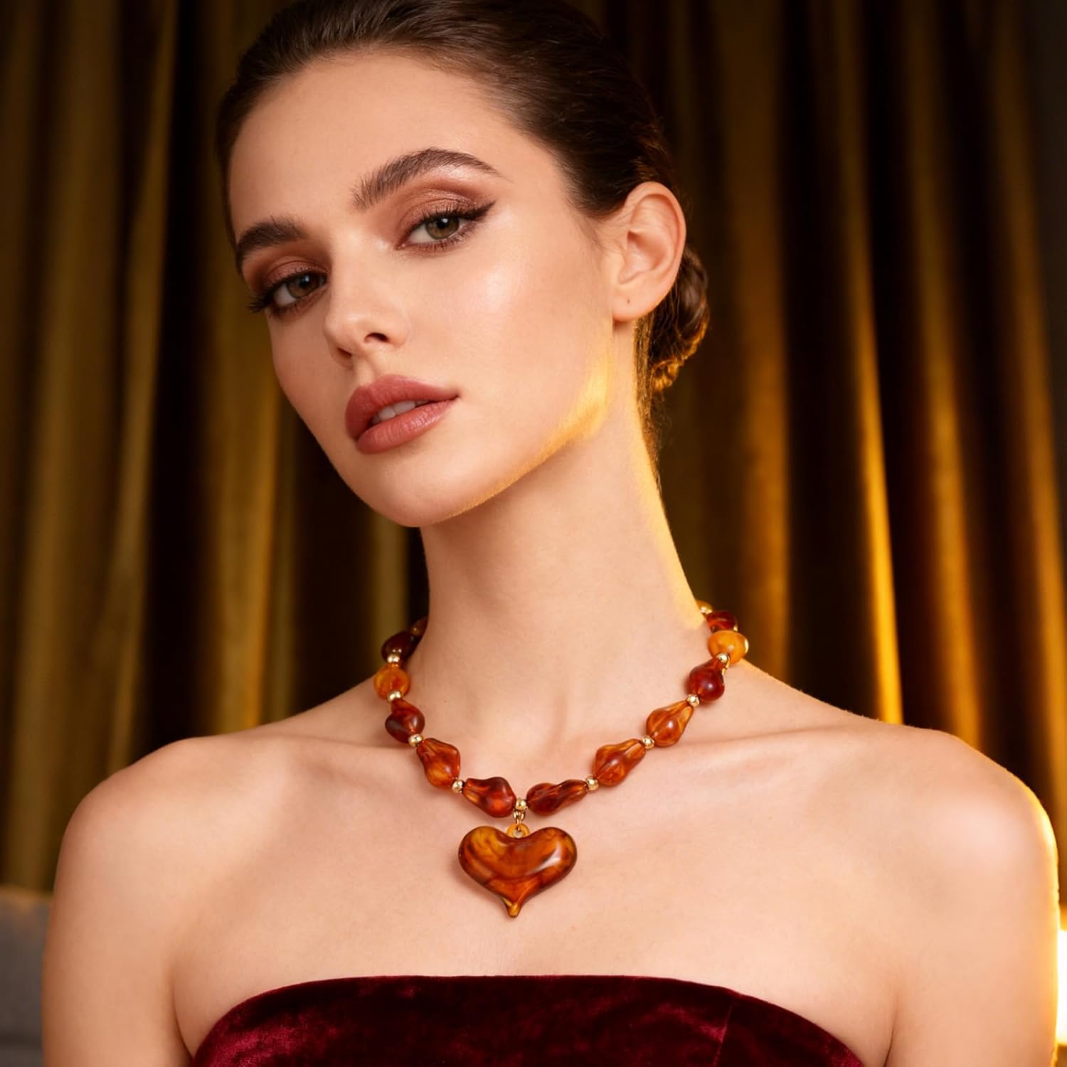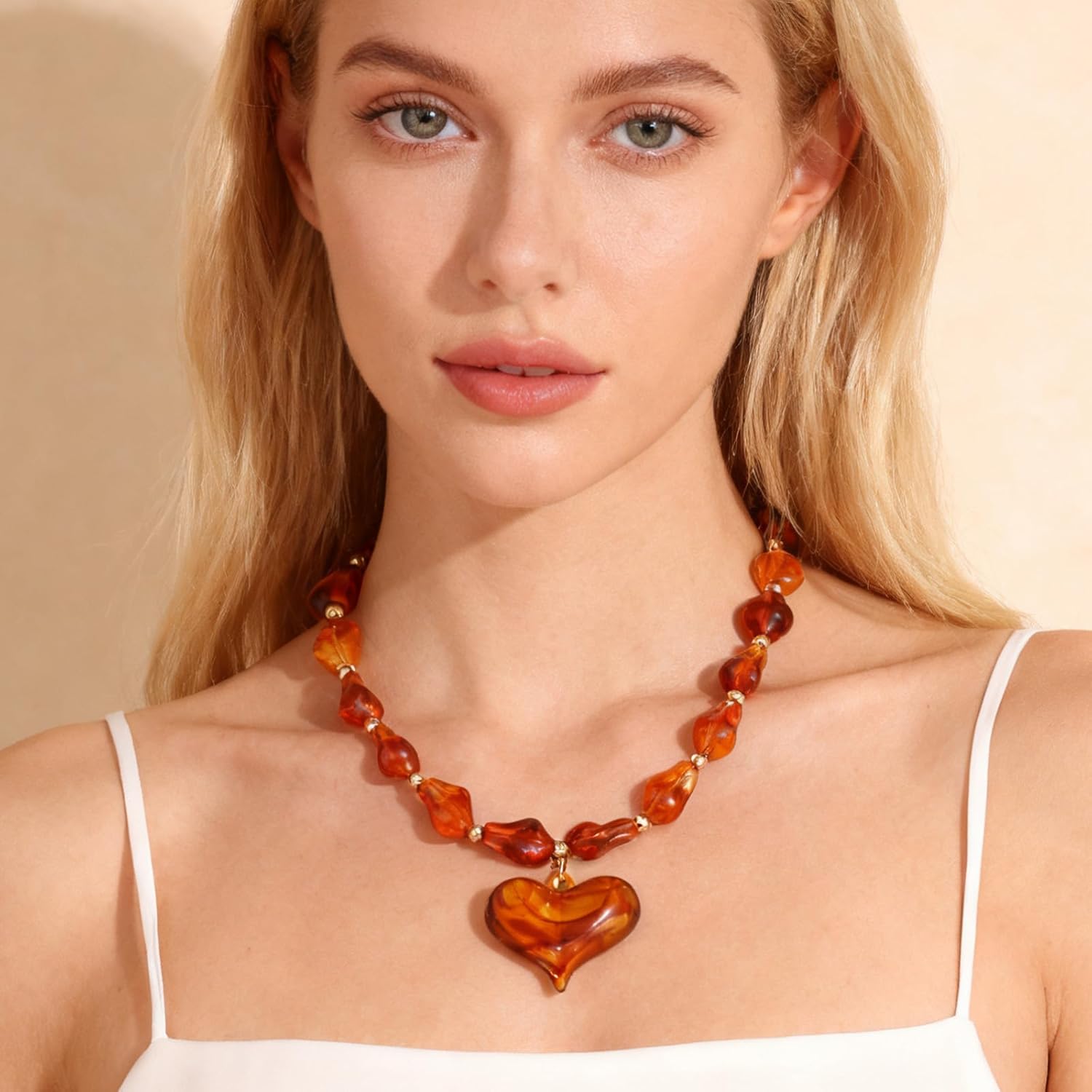 Chunky Heart Penadnt Necklace for Women Statement Boho Puff Heart Necklaces Big Acrylic Beaded Chain Jewelry Gift