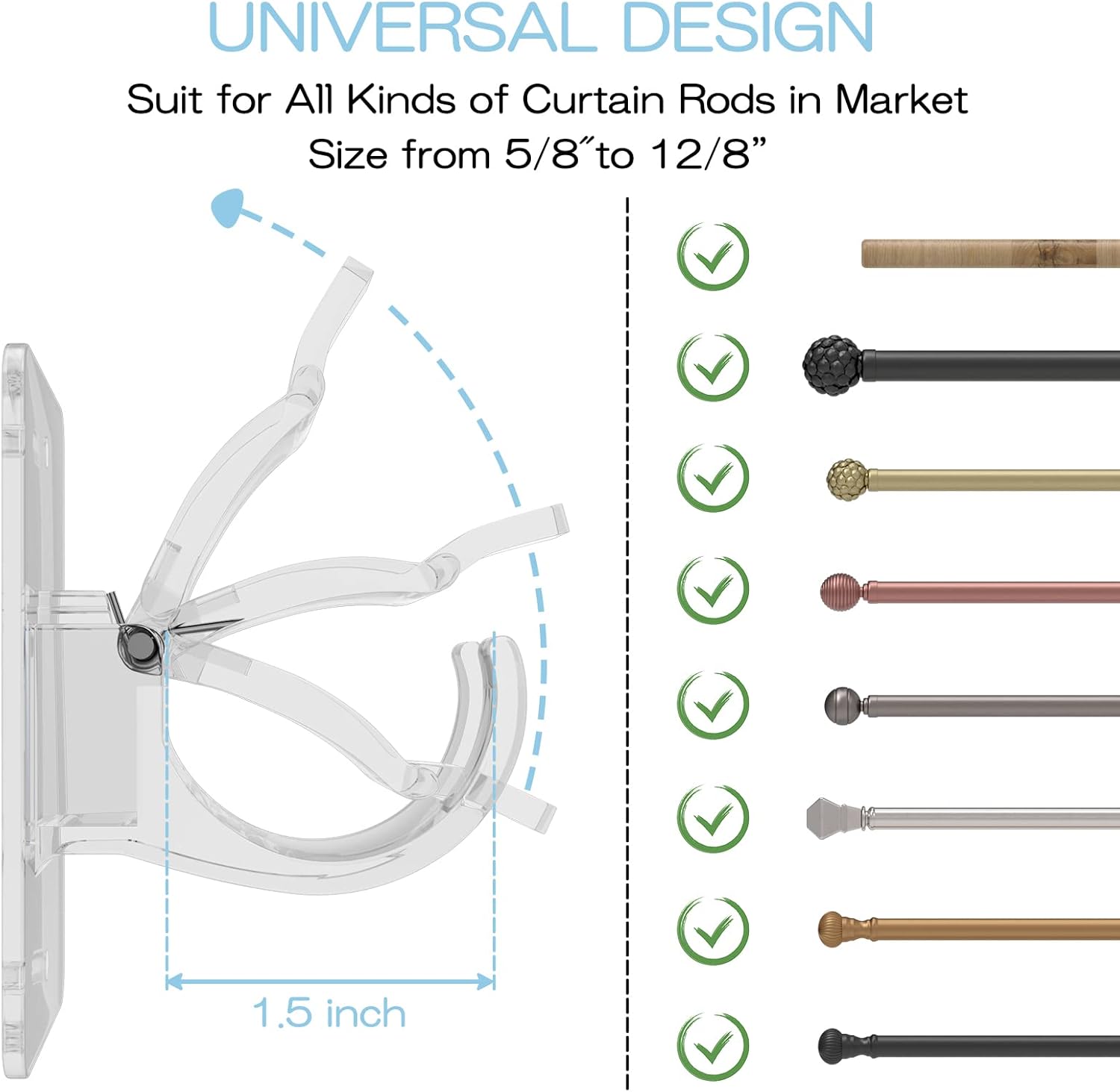 【PRODUCT LIST】You will receive 4 pcs universal plastic self adhesive curtain rod brackets with screw, the curtain pole brackets measure about 3.15 x 1.89 x 2.36 inch. Suitable for all kinds of curtain rod, towel rod or shower curtain poles diameter about 0.6” to 1.5”. Sufficient quantity to meet your daily use.