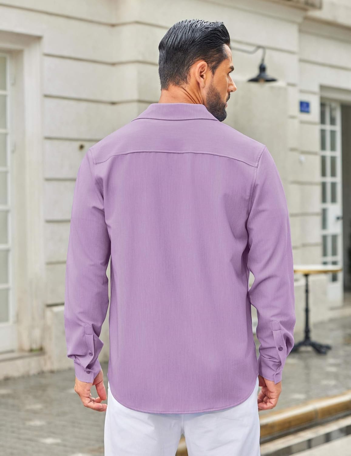 Mens Casual Long Sleeve Untucked Shirt Wrinkle Free Denim Dress Shirt
