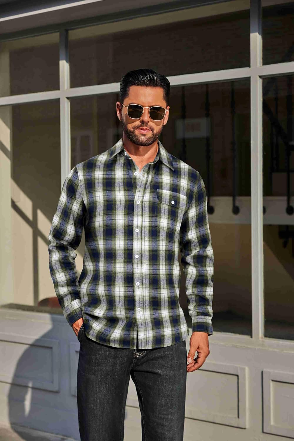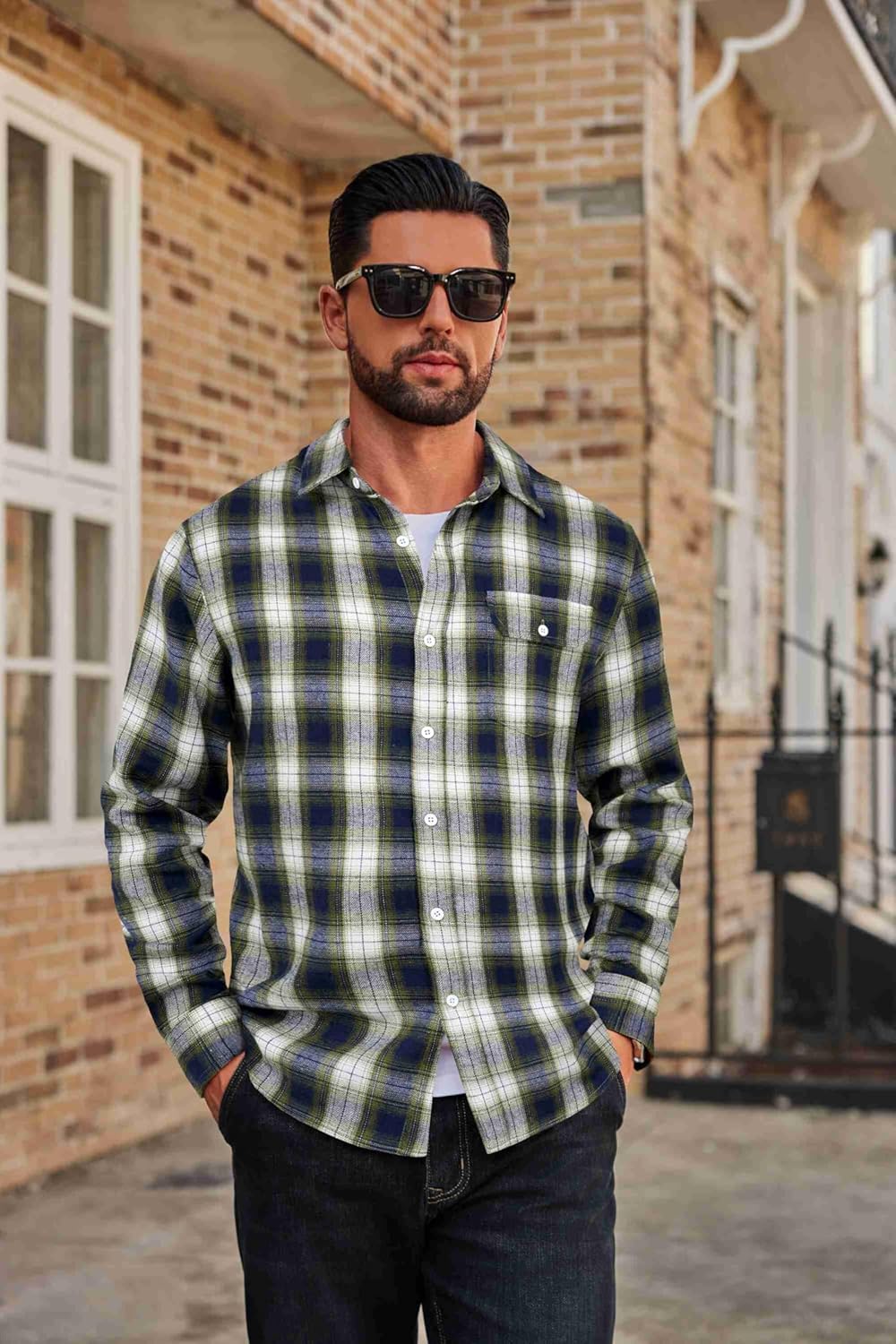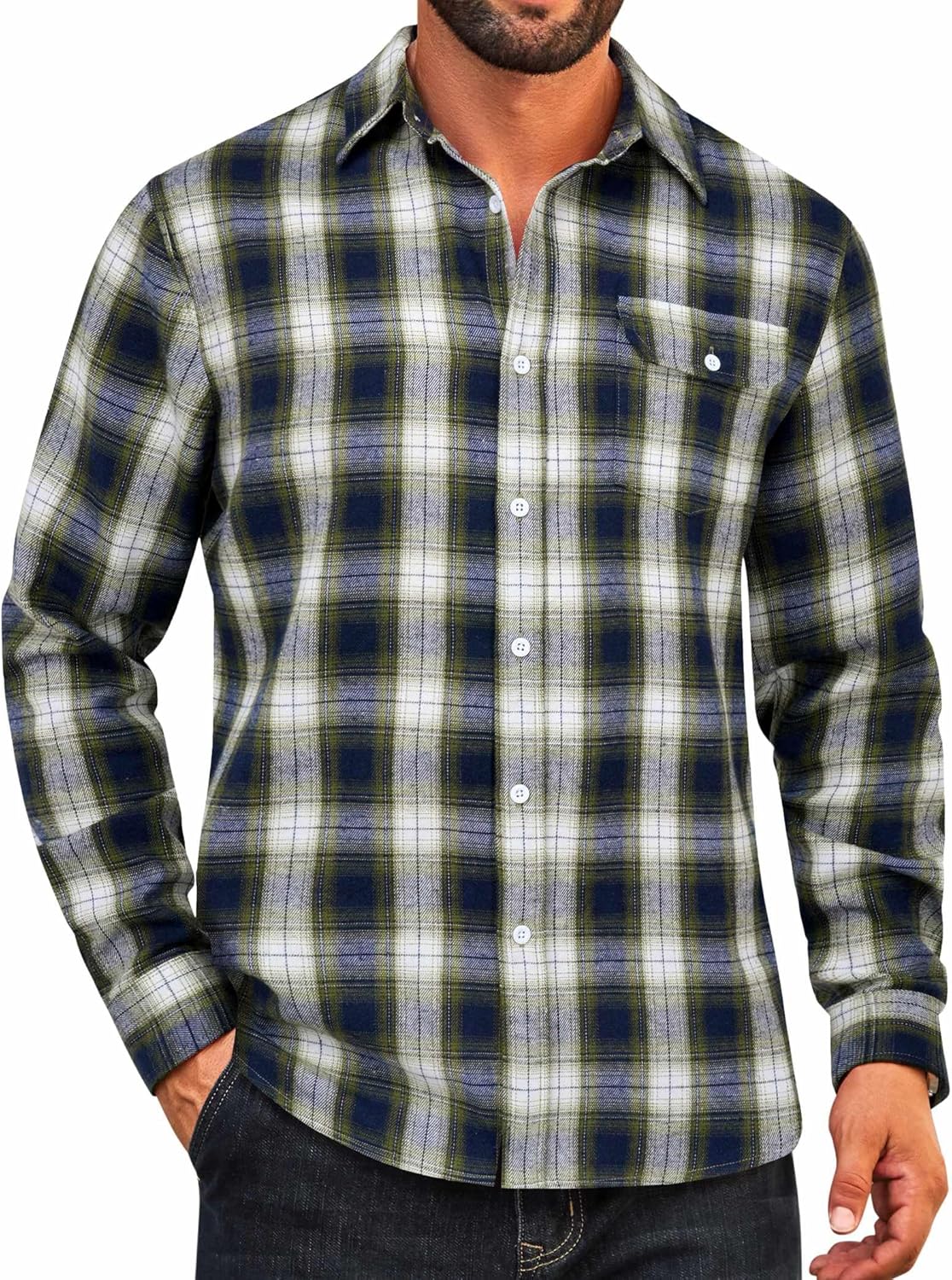 COOFANDY Mens Flannel Plaid Shirts Long Sleeve Casual Button Down Cotton Shirt with Pocket