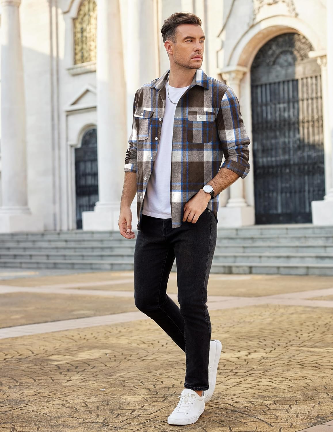 COOFANDY Mens Flannel Shirts Long Sleeve Plaid Shirt Jacket Button Down Shirt with Pockets