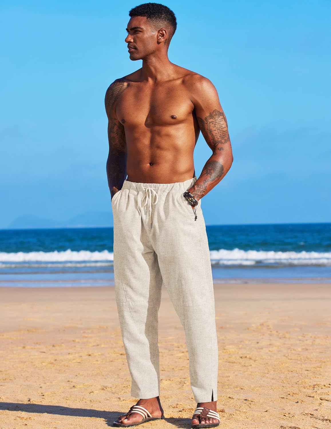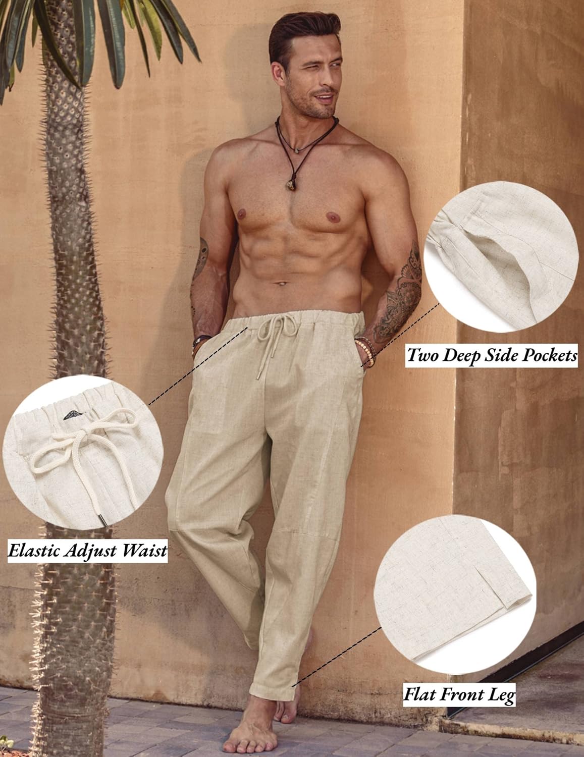 COOFANDY Men’s Linen Harem Drawstring Pants Casual Elastic Waist Lightweight Trouser Hippie Summer Beach Yoga Pants