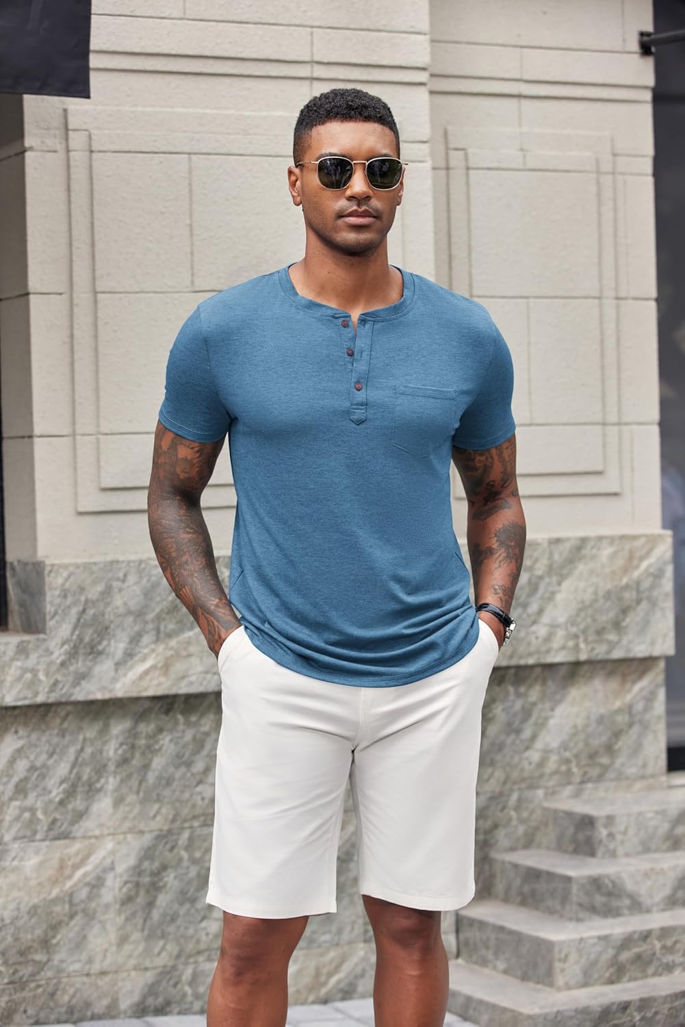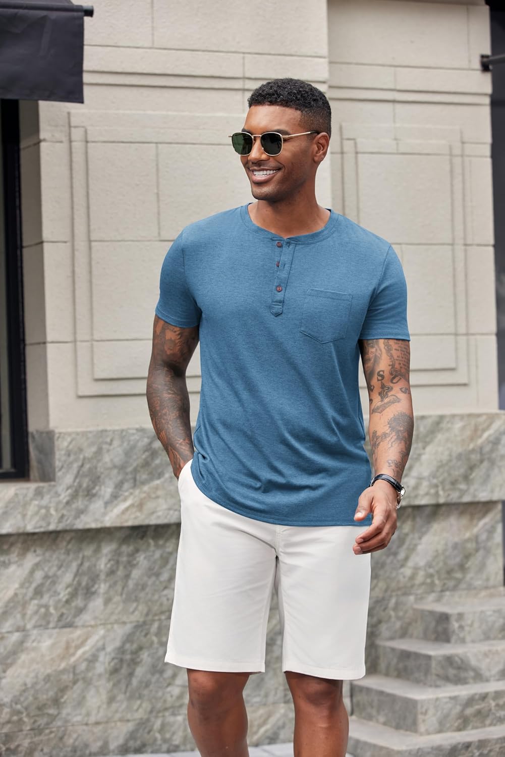COOFANDY Men’s Soft Henley Shirts Short Sleeve Casual Basic Tees with Pocket