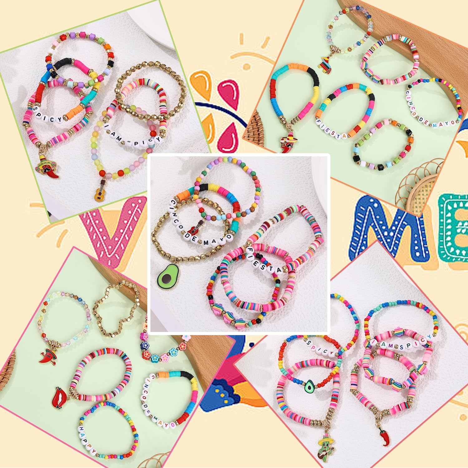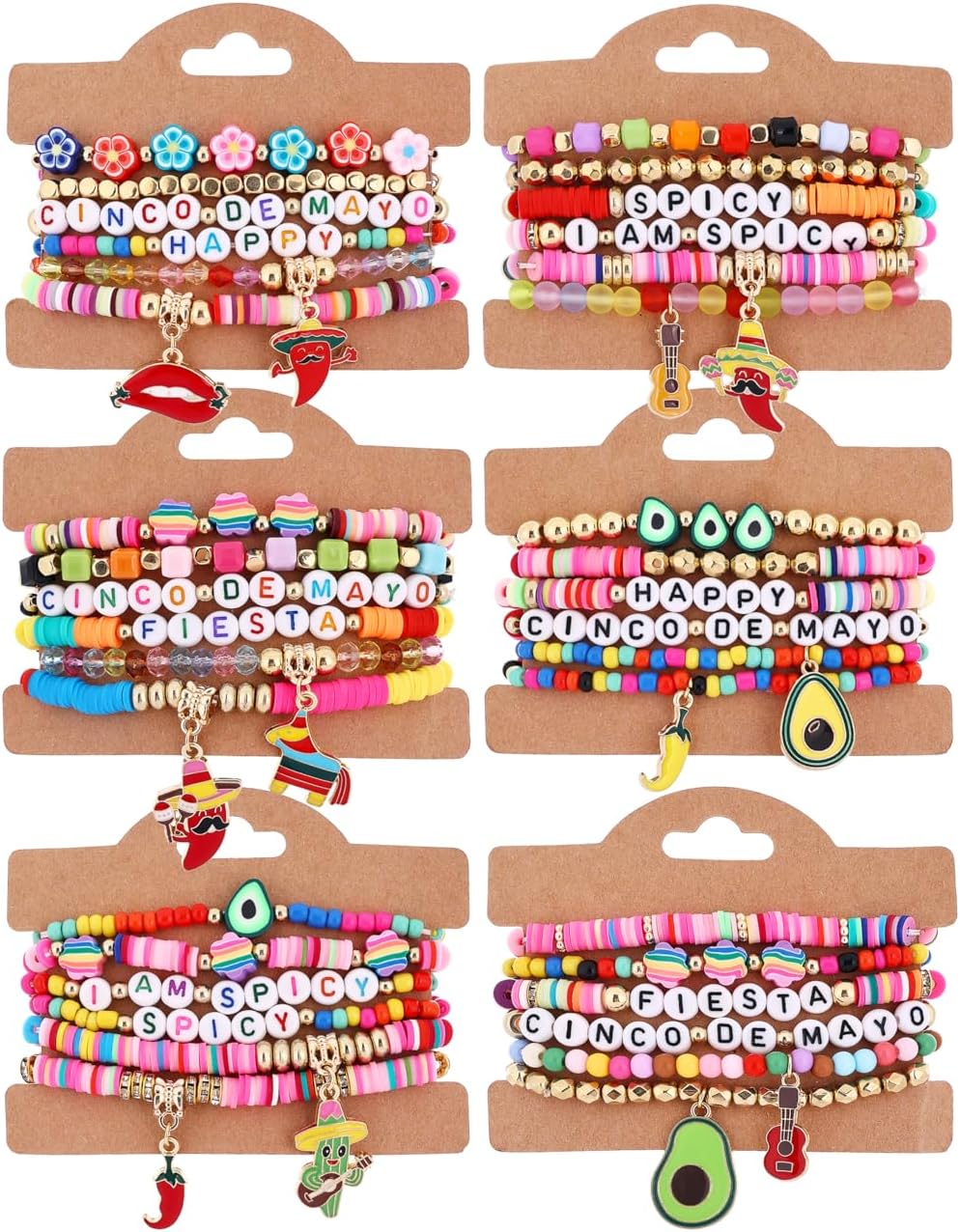 Cooluckday 36 Pcs Holiday Bracelets for Women Teen Girls Gifts Easter Mother’s Day Christmas St. Patrick’s Day Mardi Gras Bracelets Stackable Stretch Friendship Bracelets Set