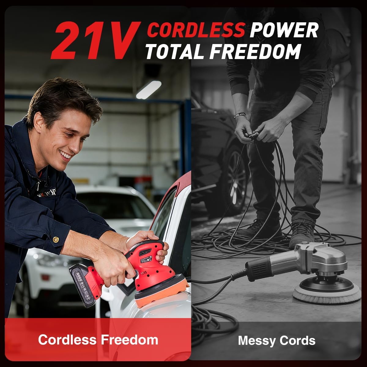 Lightweight and Cordless Design: Only 3 pounds lightweight, compact, and portable design makes it easy to carry and store. A cordless polisher that is not limited by cables. You plug in the battery, and you can use it anywhere