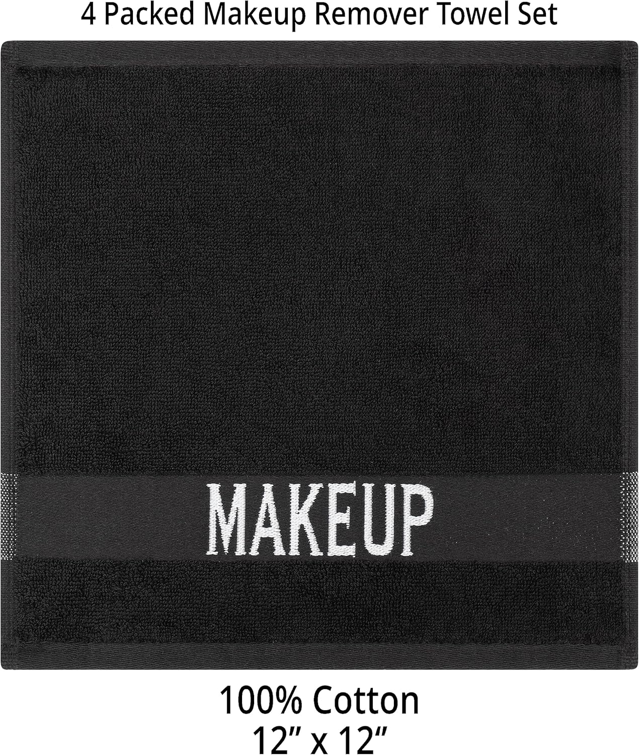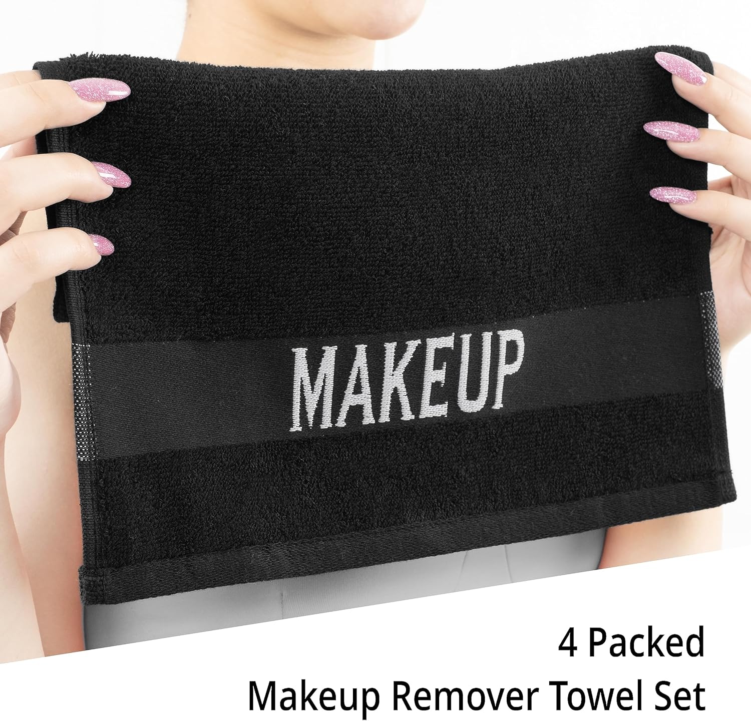 Cotton Paradise Makeup Remover Towels 4-Pack Offers Luxurious, Reusable Face Cloths Designed for Gentle yet Effective Makeup Removal. These Black Embroidered Washcloths Provide a Plush and Absorbent Texture, Making Them Perfect for All Skin Types, including Sensitive Skin