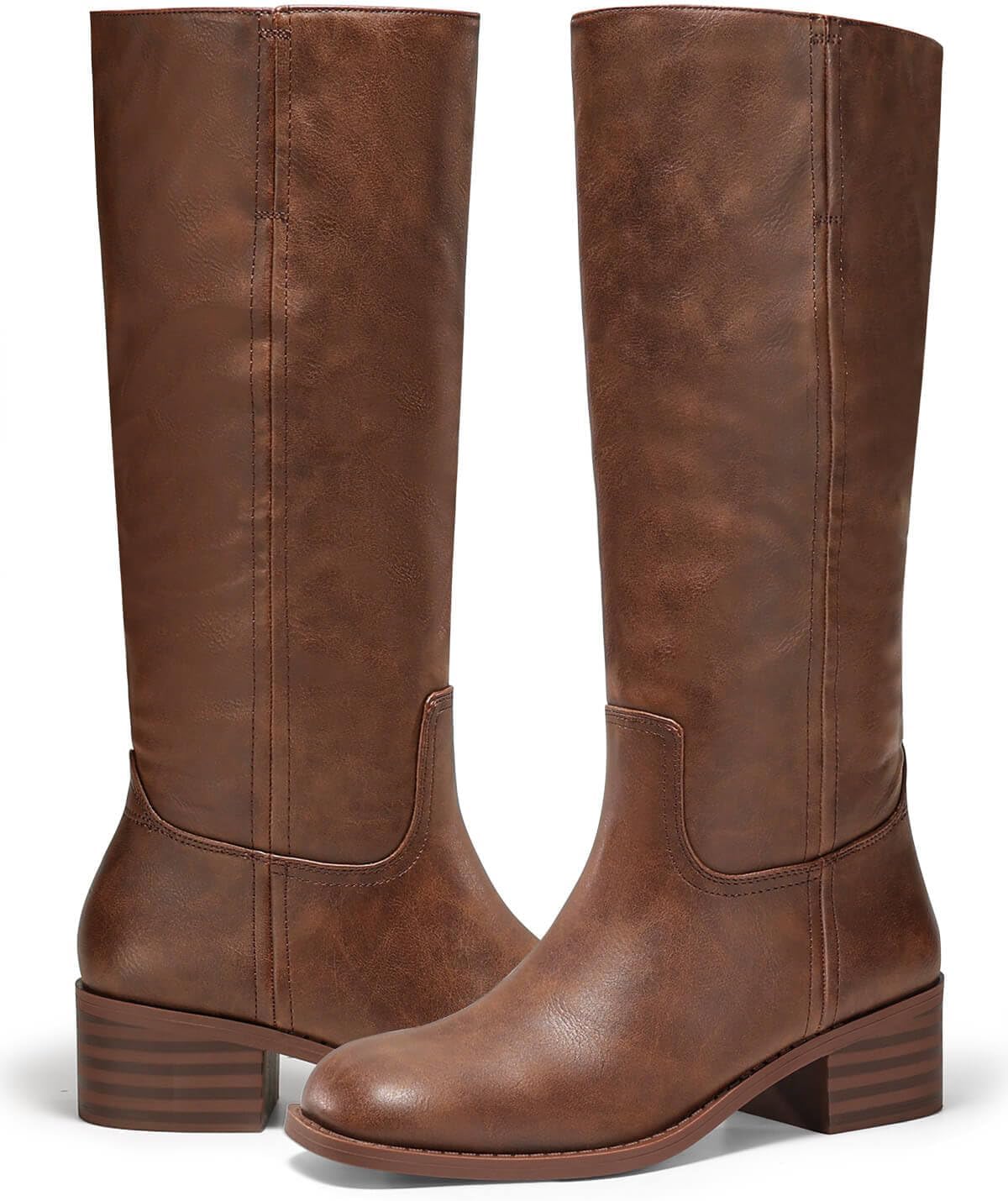 Coutgo Women’s Knee High Boots Square Toe Chunky Block Heel Tall Boots Comfortable Low Heel Shoes