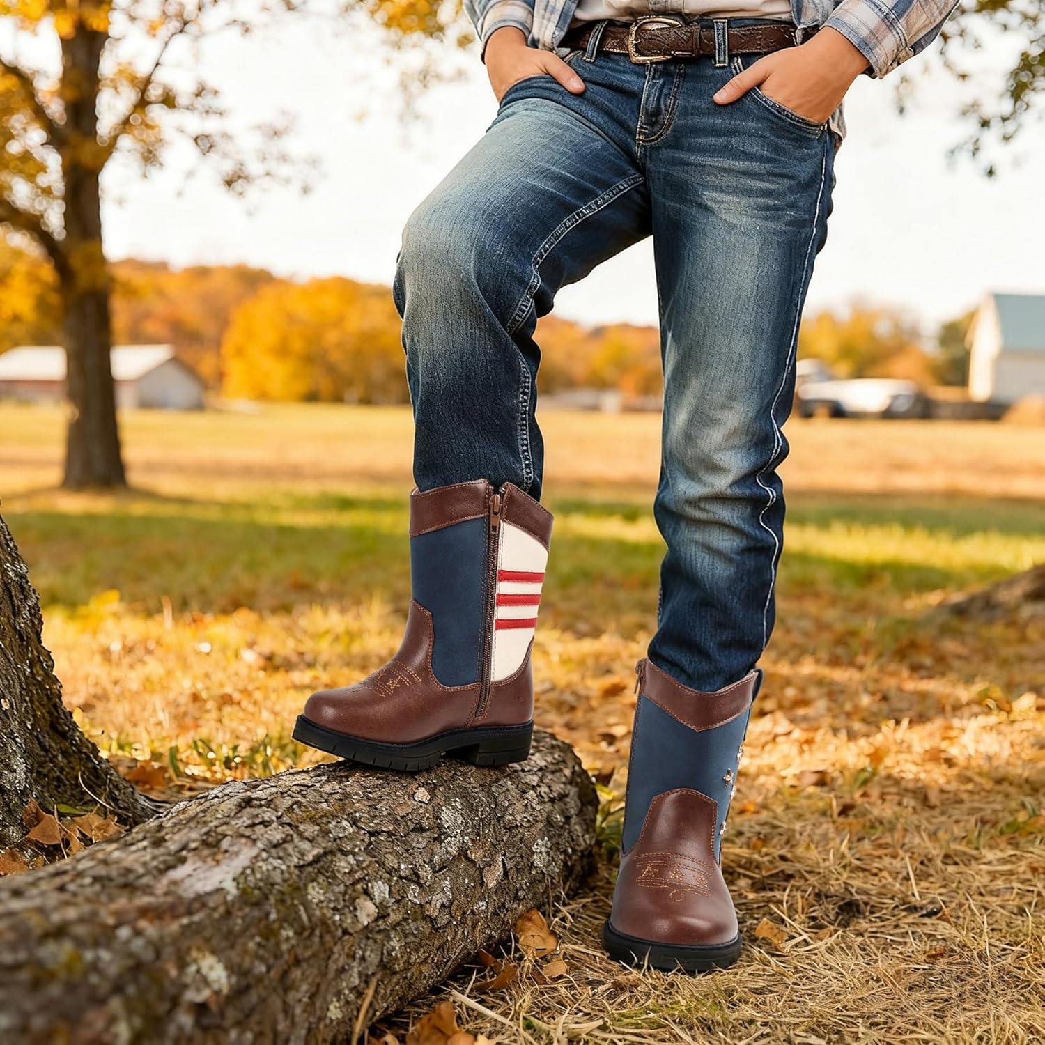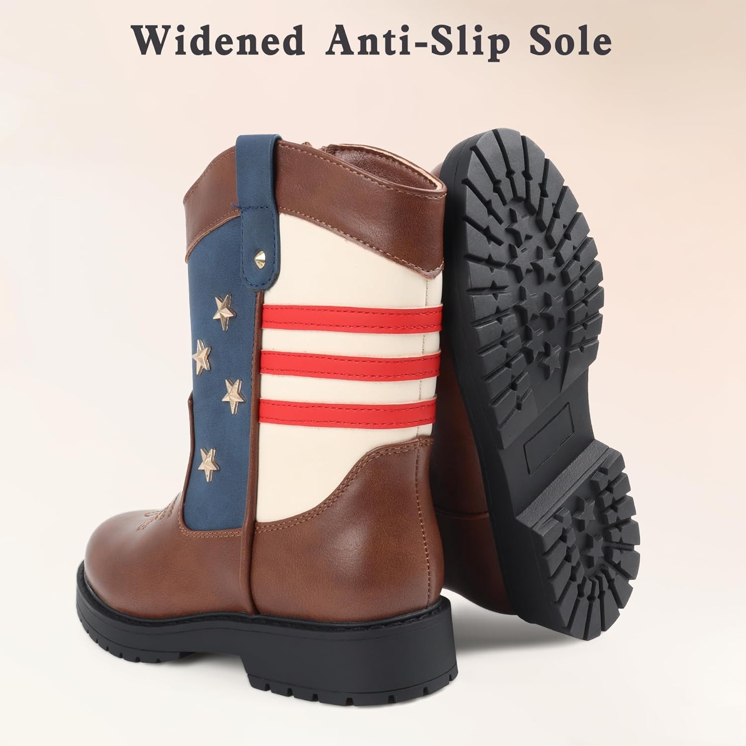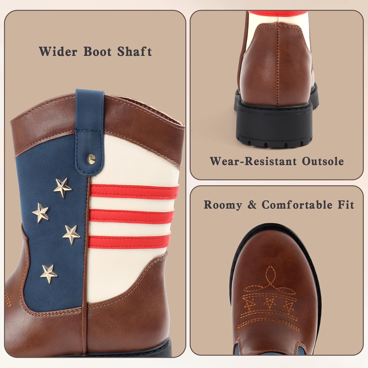 Cowboy/Cowgirl Boots for Boys/Girls Toddler Western Wide Calf Square Toe Kids Boots with Side Zipper (White+ Brown+Dark Brown)