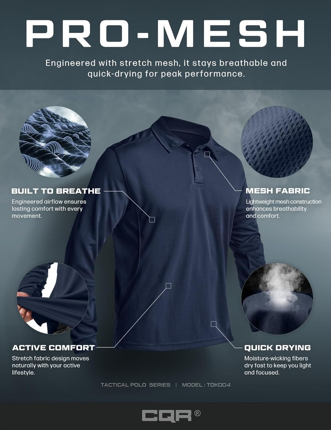 CQR Men’s Polo Shirt, Long Sleeve Tactical Shirts, Outdoor UPF 50+ Pique Shirt, Dry Fit Lightweight Golf Shirts