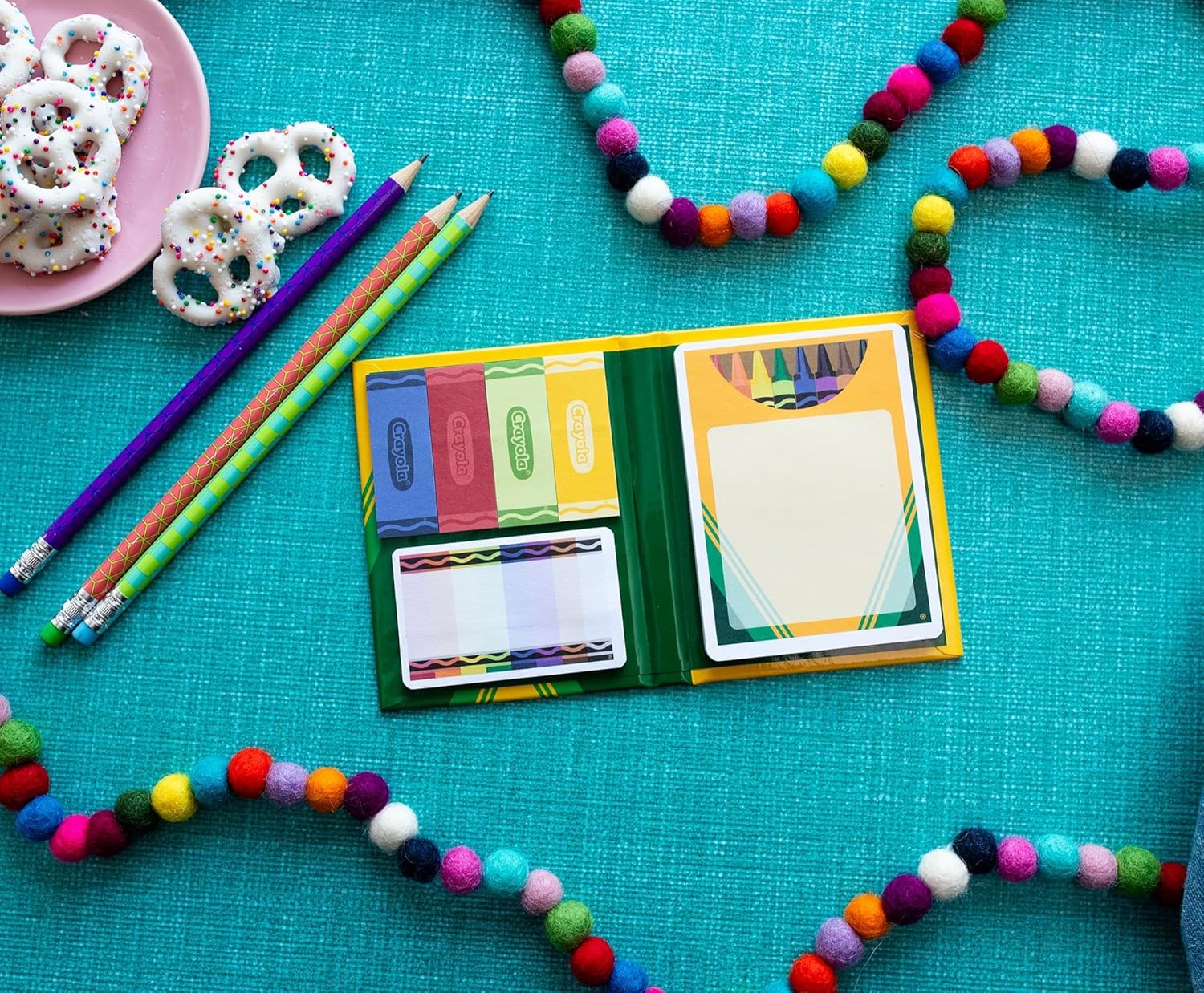 LET YOUR CREATIVITY FLOW: Doodle the day away with this nostalgic sticky note and tab set. Everything is colorfully packaged together in a charming display box that looks like a classic Crayola Crayon box.