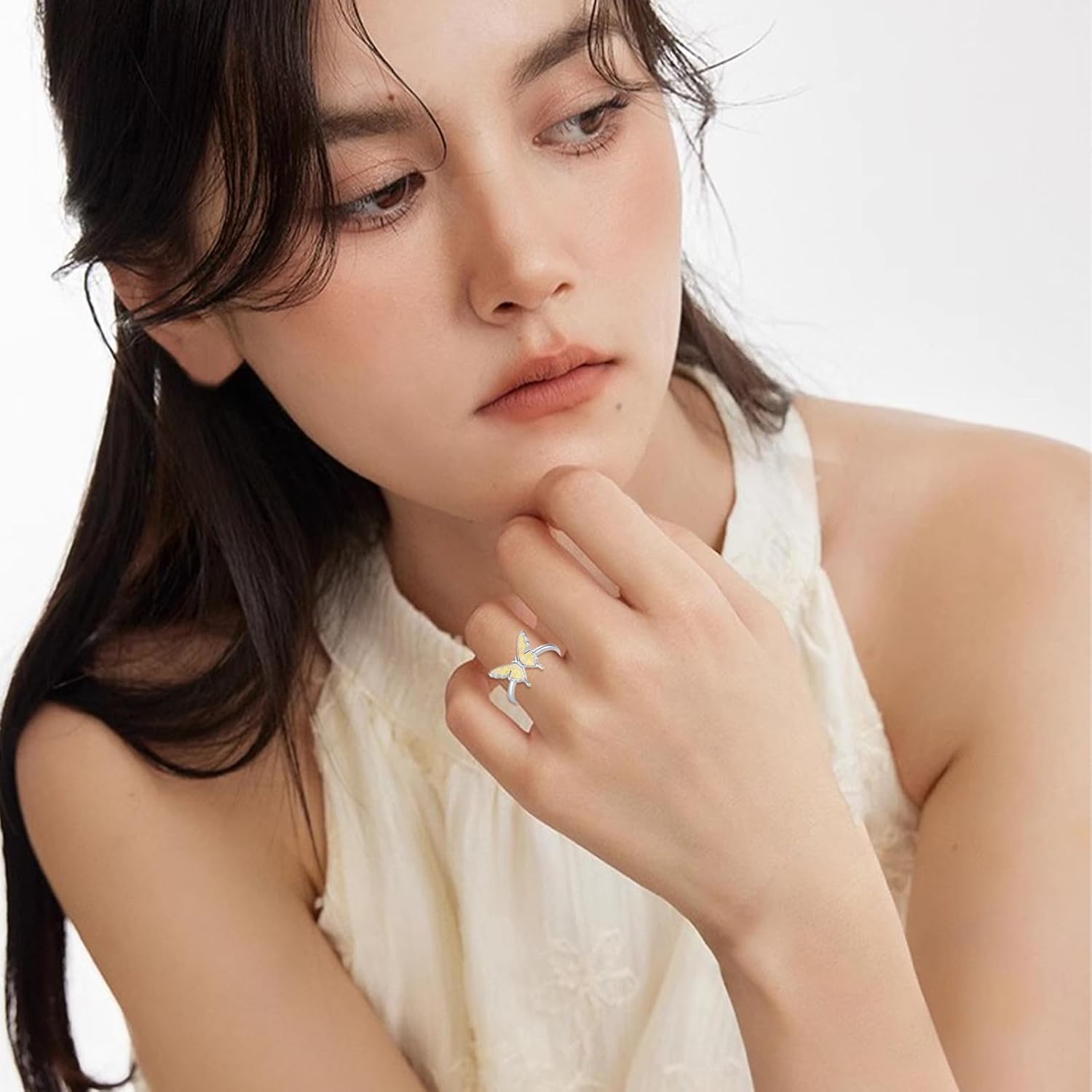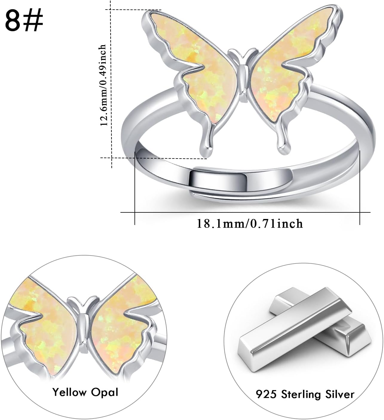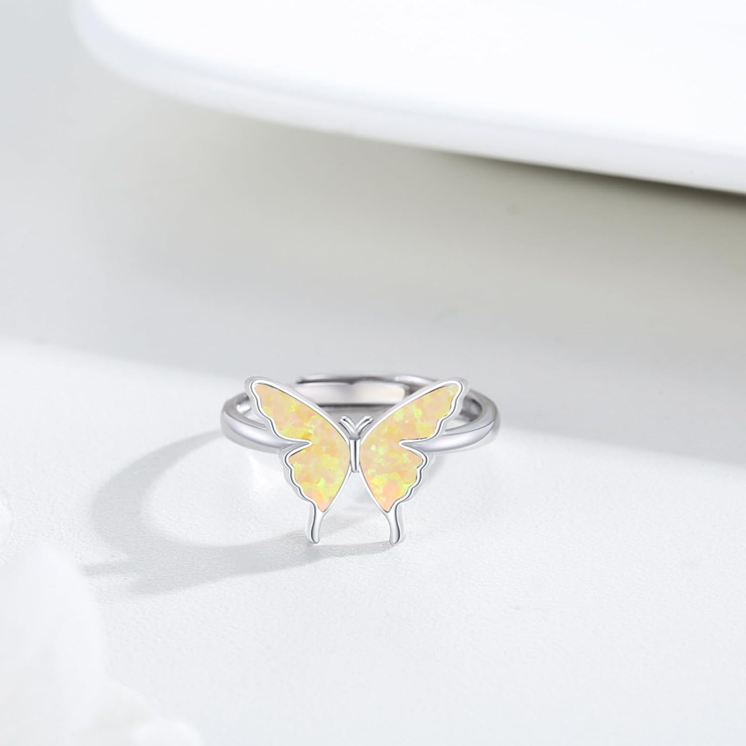 CUOKA MIRACLE Sterling Silver Opal Butterfly Open Adjustable Ring – Exquisite Cute Jewelry Rings for Women’s Anniversary or Birthday Gifts