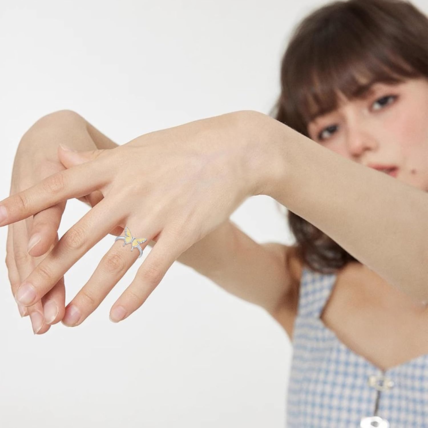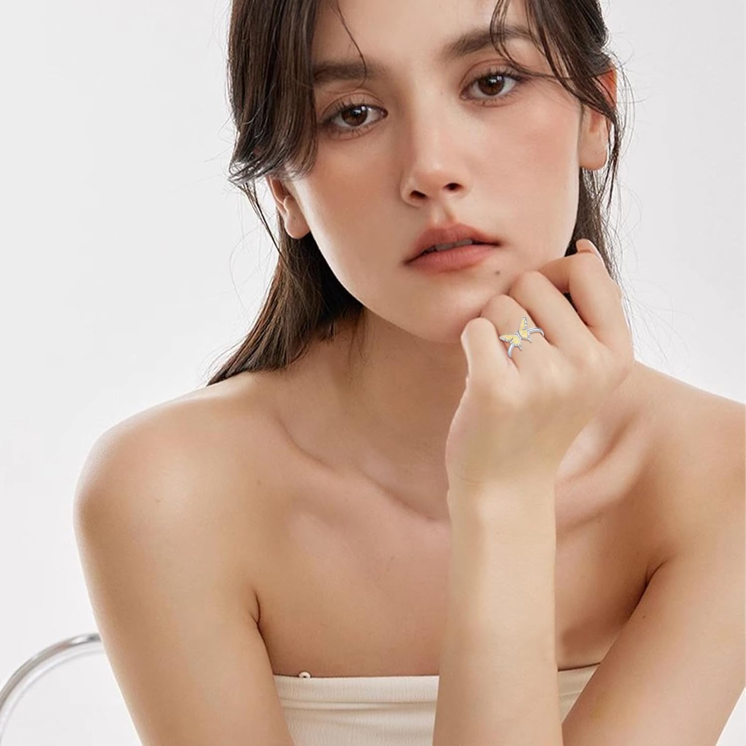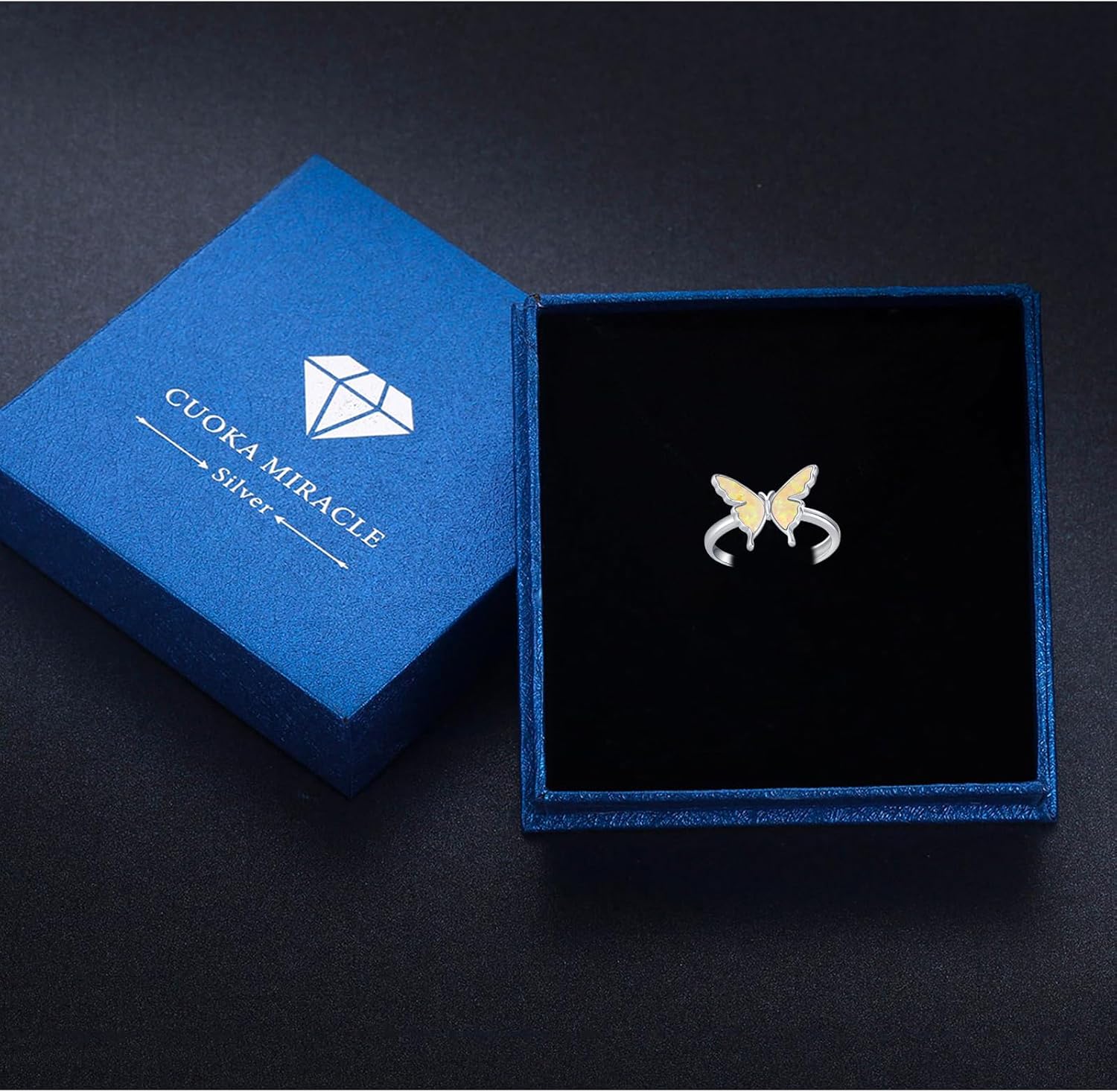 CUOKA MIRACLE Sterling Silver Opal Butterfly Open Adjustable Ring – Exquisite Cute Jewelry Rings for Women’s Anniversary or Birthday Gifts
