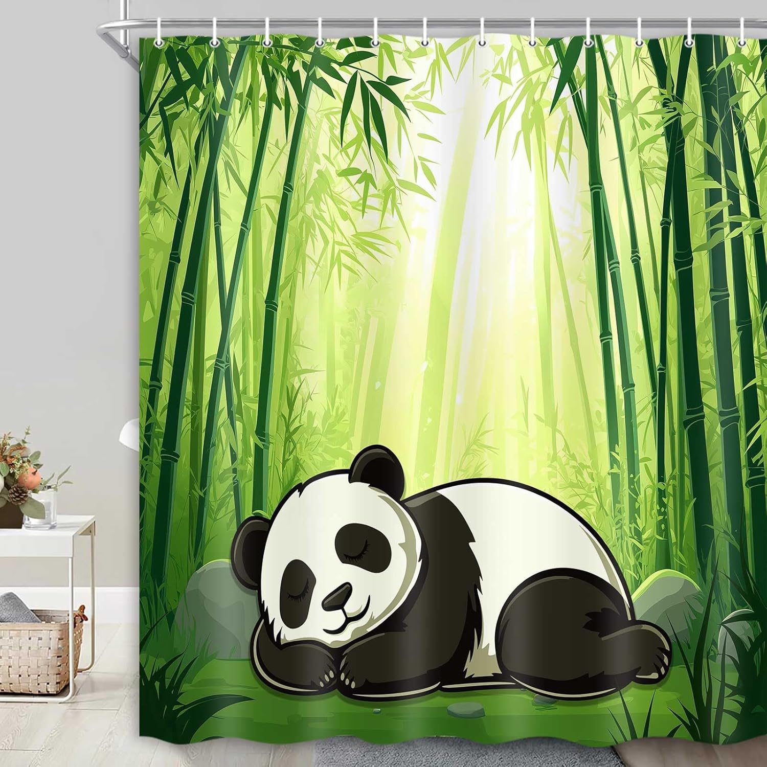 Adorable Design: The Cute Panda Shower Curtain features an endearing panda bear design set against a vibrant bamboo forest, making it a perfect addition to your bathroom decor. This panda patterned shower curtain brings a whimsical touch that delights both kids and adults.