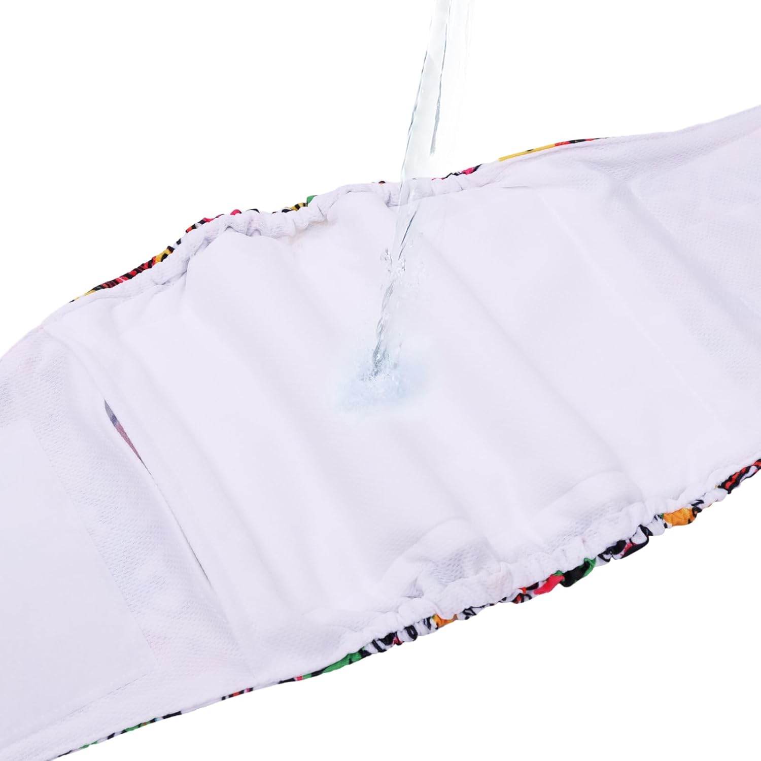 Leak-proof with waterproof exterior shell to prevent leaking and possible damage to rugs, carpets, sofas and so on, and has easy fuzzy fastener closures for a snug fit. CuteBone male dog diapers with not only sewn-in super absorbent pads, but also a pocket where you can add extra pads for heavier wetting. Also with comfy fast-dry inner lining that your dog won’t fuss over.
