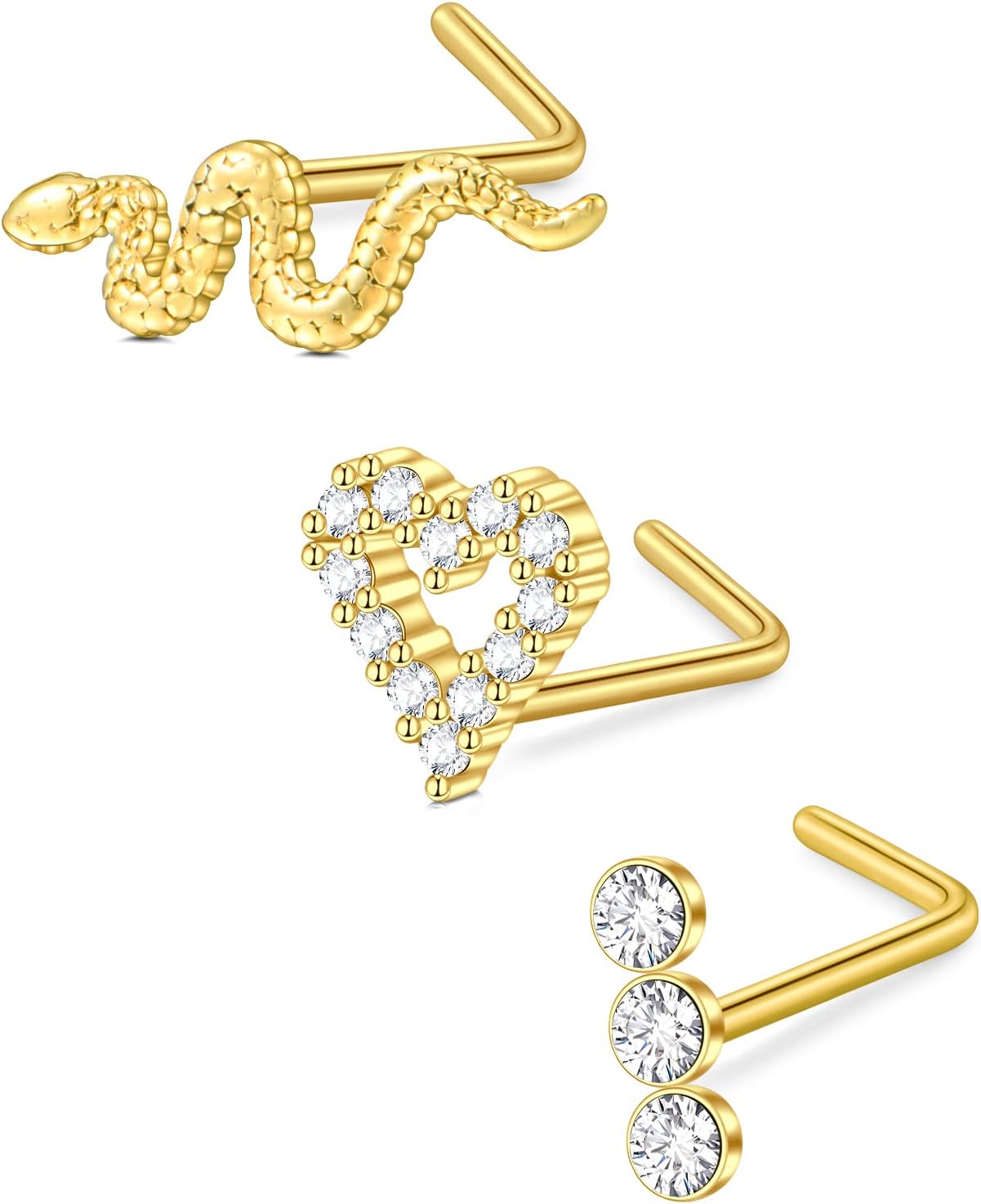 D.Bella 16G 18G 20G 22G L Shaped Nose Studs Surgical Steel 1.5mm 2mm 2.5mm 3mm Clear Colorful Diamond CZ Nose Rings Studs Nose Rings for Women Nose Nostril Piercing Jewerly Silver Gold Rose Gold Black