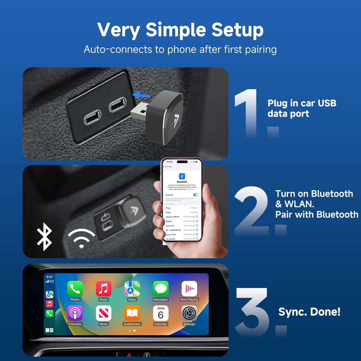 【Critical Compatibility Check】 Before purchasing, please confirm your vehicle is equipped with factory-wired CarPlay or Android Auto (Model Year 2016+). This adapter is designed to convert a wired system to wireless; it cannot add CarPlay/Android Auto to a car that does not already have it. Requires iPhone (iOS 10+) or Android smartphone (Android 11+). Note: This model is NOT compatible with BMW or Tesla vehicles