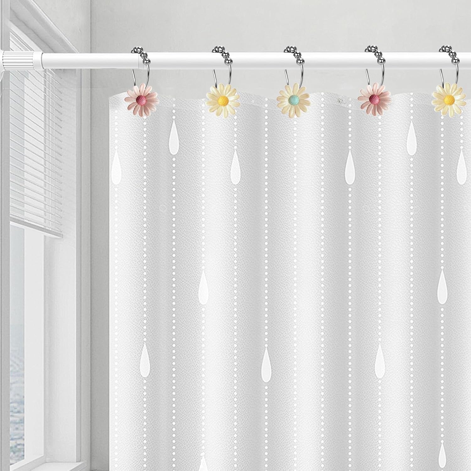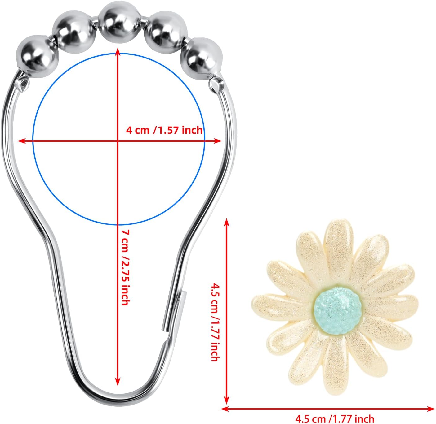 EASY INSTALLATION: No tools required – no need to disassemble the shower curtain rod, just open and fasten each hook onto the shower curtain rod and the separated design of daisy decor is easy to install and can be installed on other shower curtain hooks.Because the material of the hook is relatively good, it needs a little effort to open it.