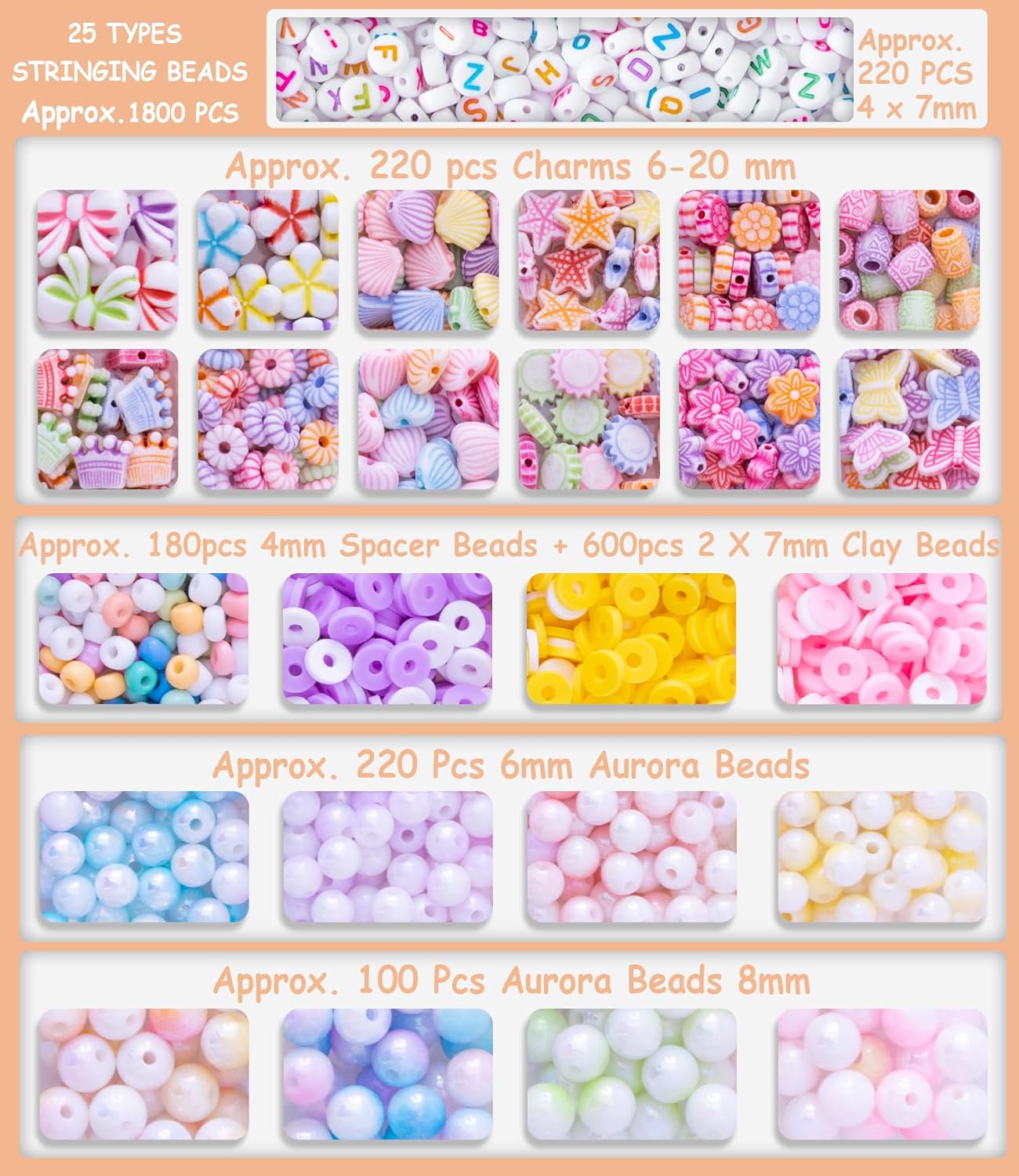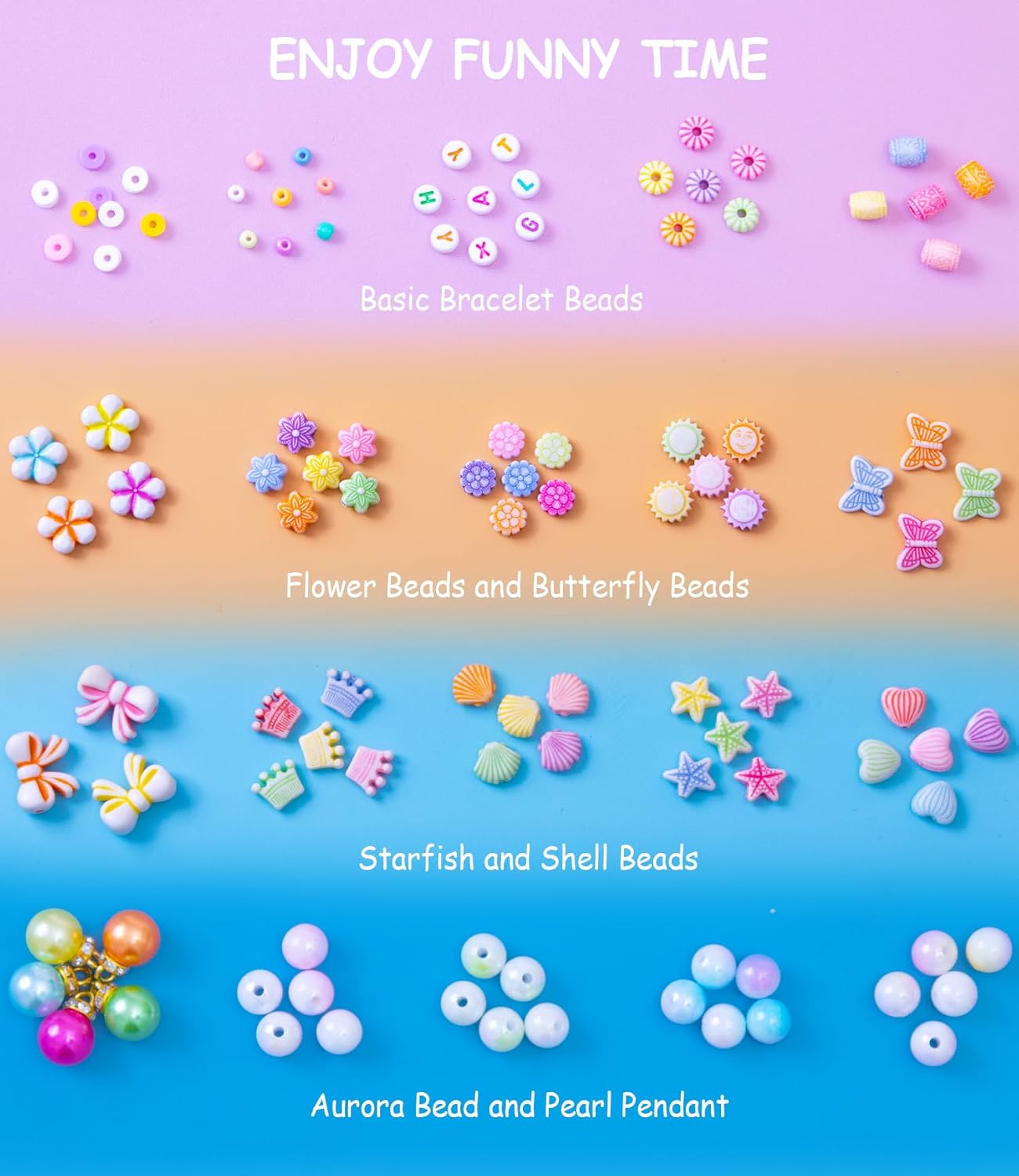 Beads & Bracelet Making Fun – Includes colorful beads, flower beads, heart beads, jingle bells and charms. Perfect for girls to design bracelets, necklaces, and DIY jewelry with endless creativity.