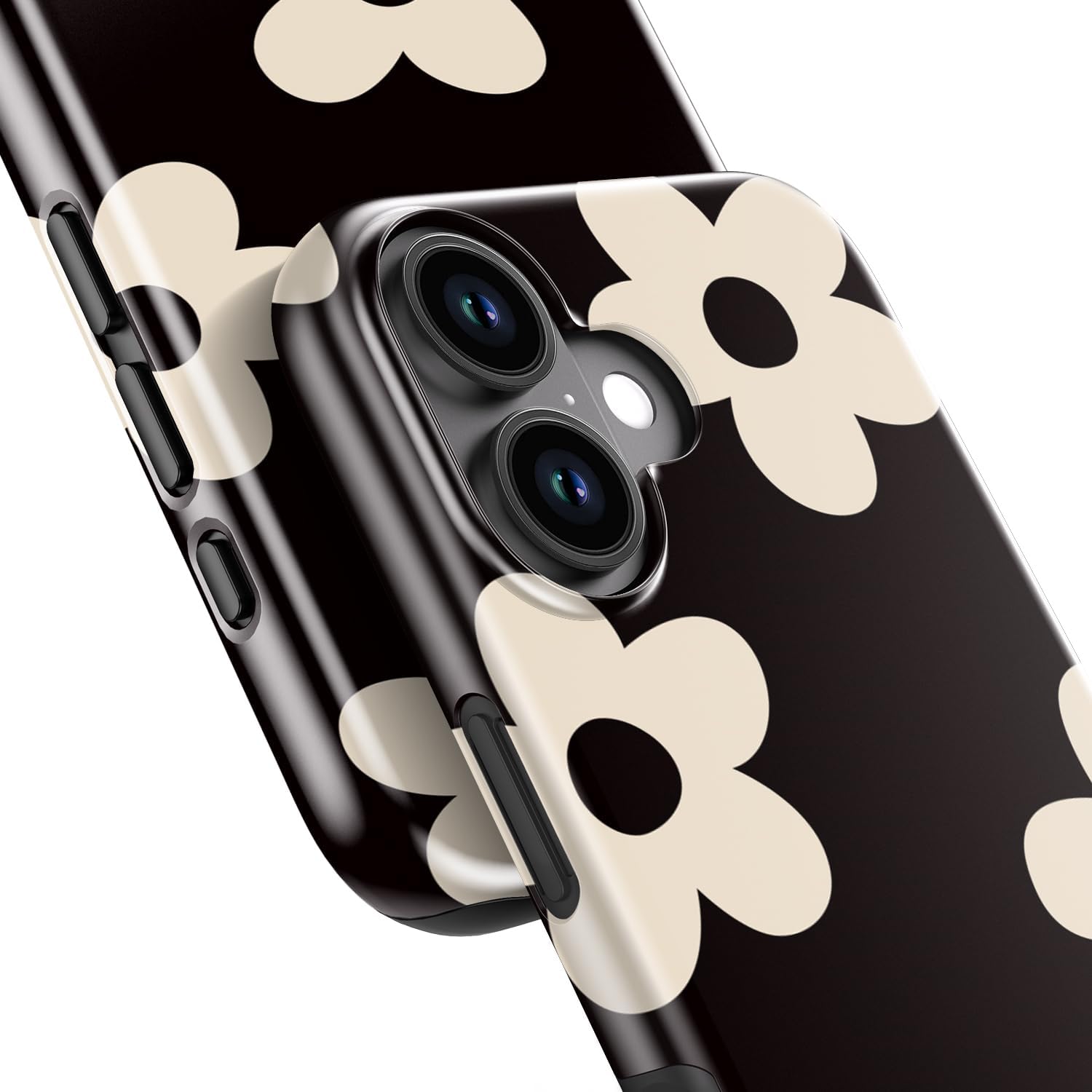 DEENAKIN for iPhone 16 Case – Wireless Charging Compatible – Dual-Layer Hard Shell & Silicone Cover – Shockproof Protective Phone Case with Trendy Cute Designs for Women – Elegant Ivory Flower