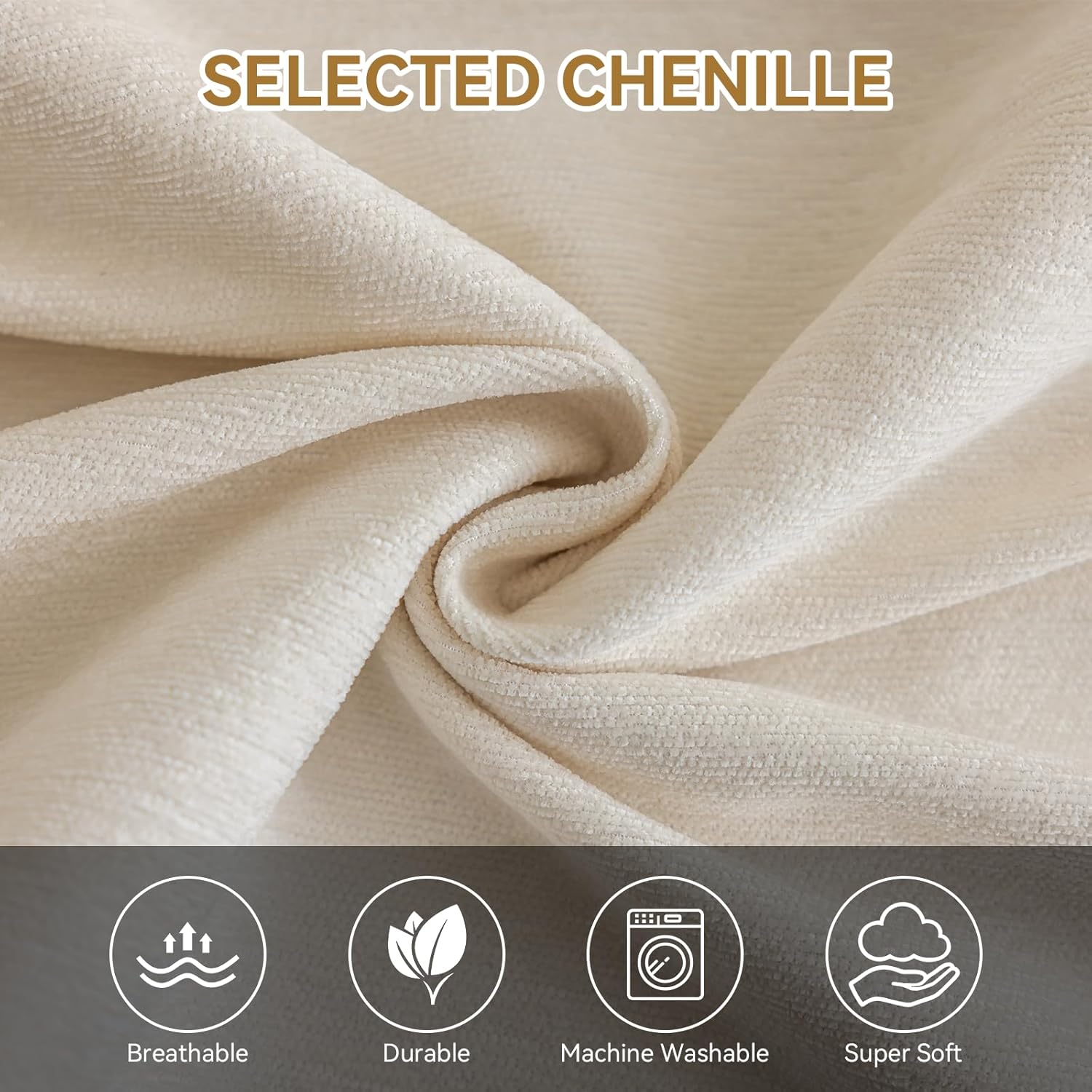 Deep Dream Chenille Sofa Cover, Couch Covers for 3 Cushion Couch, Washable Slipcovers for Sectional l Shaped Dogs Protector Furniture Covers (71″ x 150″, Beige)