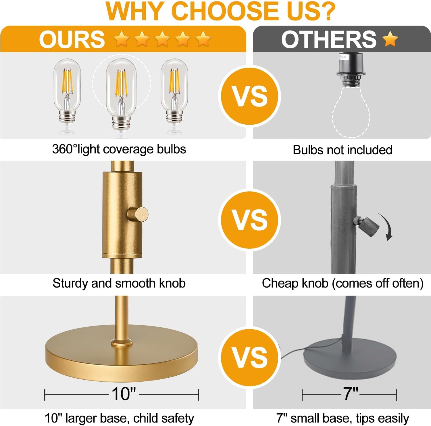 Exquisite And Sturdy Base: Our classic standing lamp is made of high-quality metal and has an elegant appearance.The three lightweight cages are durable and never bend.The pole is straight and perfectly connected to the base without swinging.The base is Heavy enough, Safe for your baby and pets.The base to provide a good stability from falling that can make sure safety and stable even on the carpet.