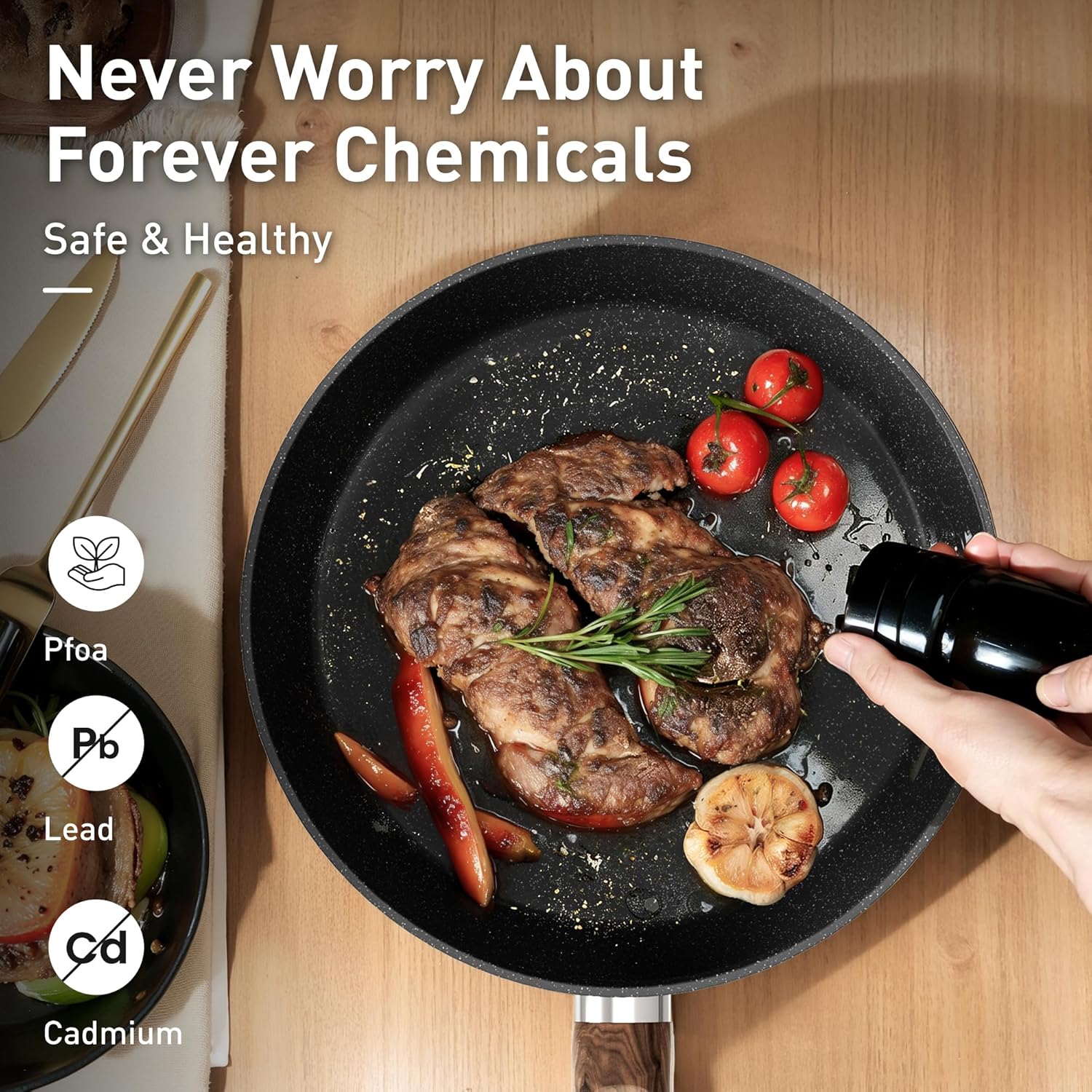 𝐄𝐯𝐞𝐧 𝐇𝐞𝐚𝐭𝐢𝐧𝐠 𝐓𝐞𝐜𝐡𝐧𝐨𝐥𝐨𝐠𝐲: Our induction pots and pans non stick does not contain PFOS and PFOA, ensuring a safe cooking experience. The even heating technology guarantees uniformly cooked meals, eliminating hot spots and unevenly cooked food. Create culinary masterpieces with our pots and pans set