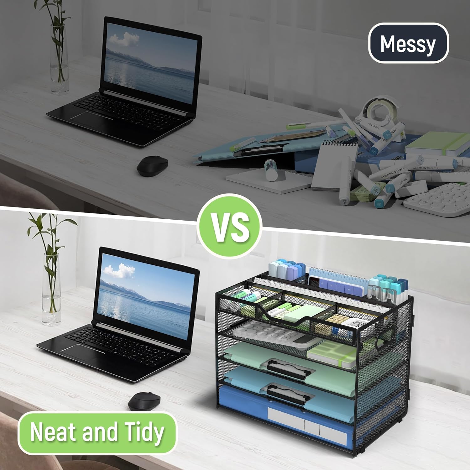 Low-Maintenance, Easy to Clean-The smooth powder-coated surface of this professional office desk organizer resists dust and stains—simply wipe with a damp cloth for spotless upkeep. Ideal for busy offices, classrooms, or home workspaces where desk organization and hygiene matter most. The perfect paper organizer for desk among your essential office supplies
