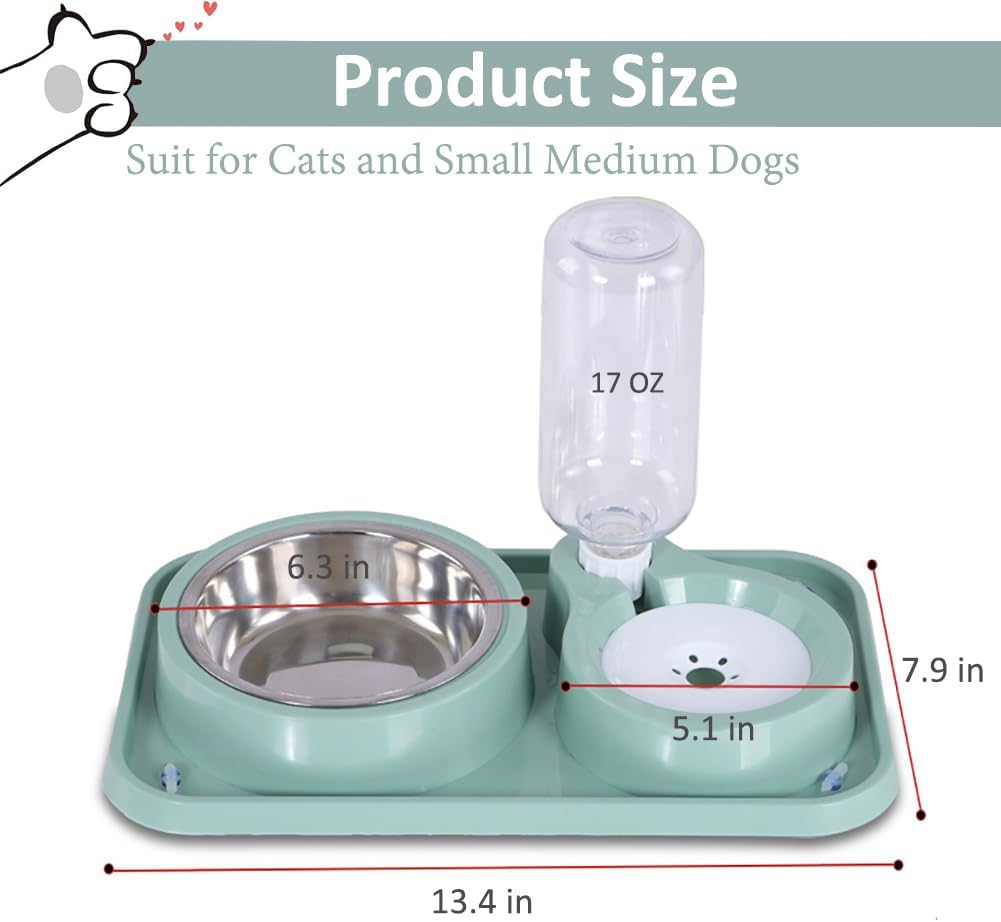 Thoughtful Design – 2-in-1 cat food and water bowl set. Cat food bowl: The detachable stainless-steel bowl is break-proof and pressure resistant, easy to clean and harmless for health. Cat water bowl: The water bowl divider prevents wetting pets’ hair and keeps the water clean