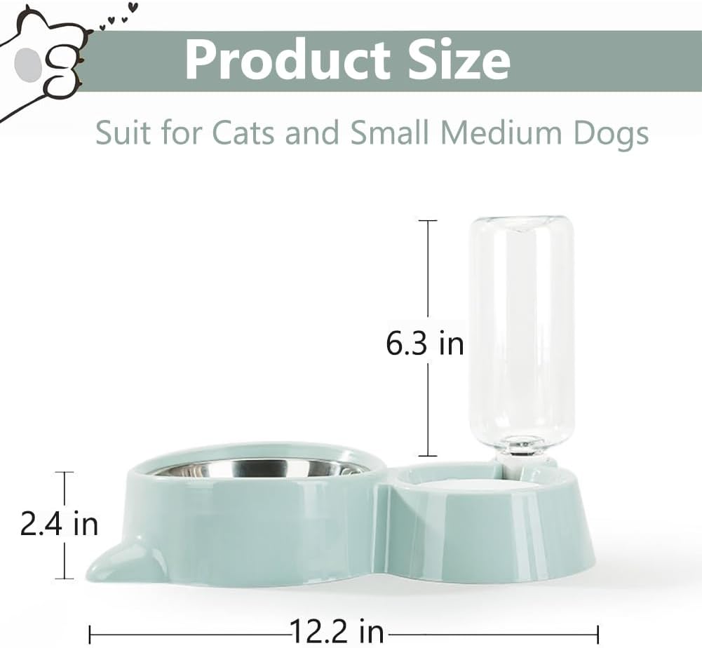 Thoughtful Design – 2-in-1 cat food and water bowl set. Cat food bowl: The detachable stainless-steel bowl is break-proof and pressure resistant, easy to clean and harmless for health. Cat water bowl: The water bowl divider prevents wetting pets’ hair and keeps the water clean