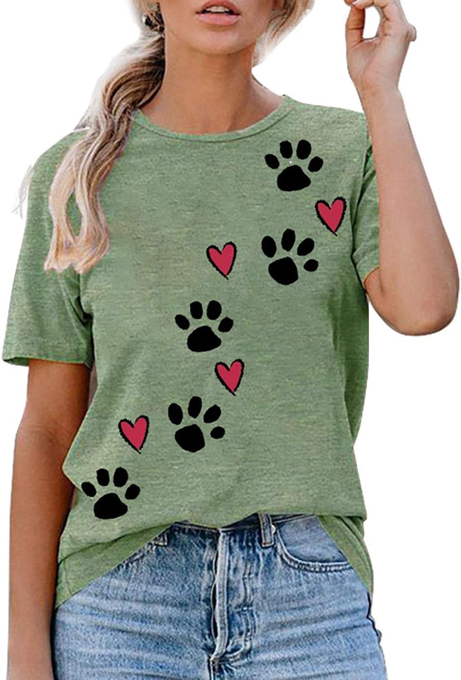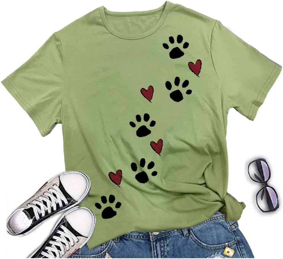 Dog Paw Love Heart Print T-Shirt for Women Short Sleeve Dog Mom Graphic Tees Tops Mother’s Day Shirts