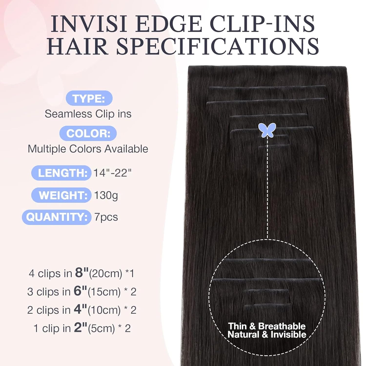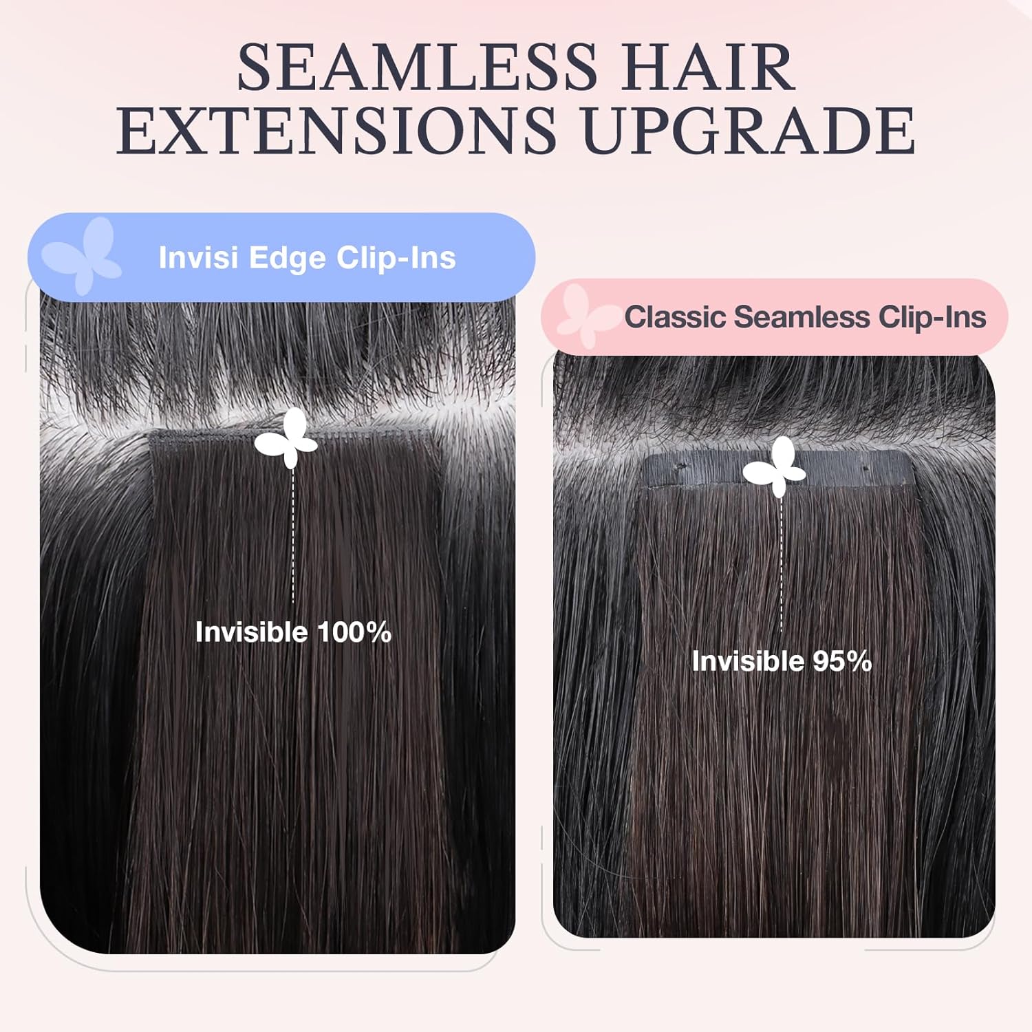 Invisible Clip in Hair Extensions Human Hair: Injection design implants each hair strand into the extension, blending perfectly with your natural hair to achieve a seamless and invisible effect, no tangle, can be curled, straightened, styled