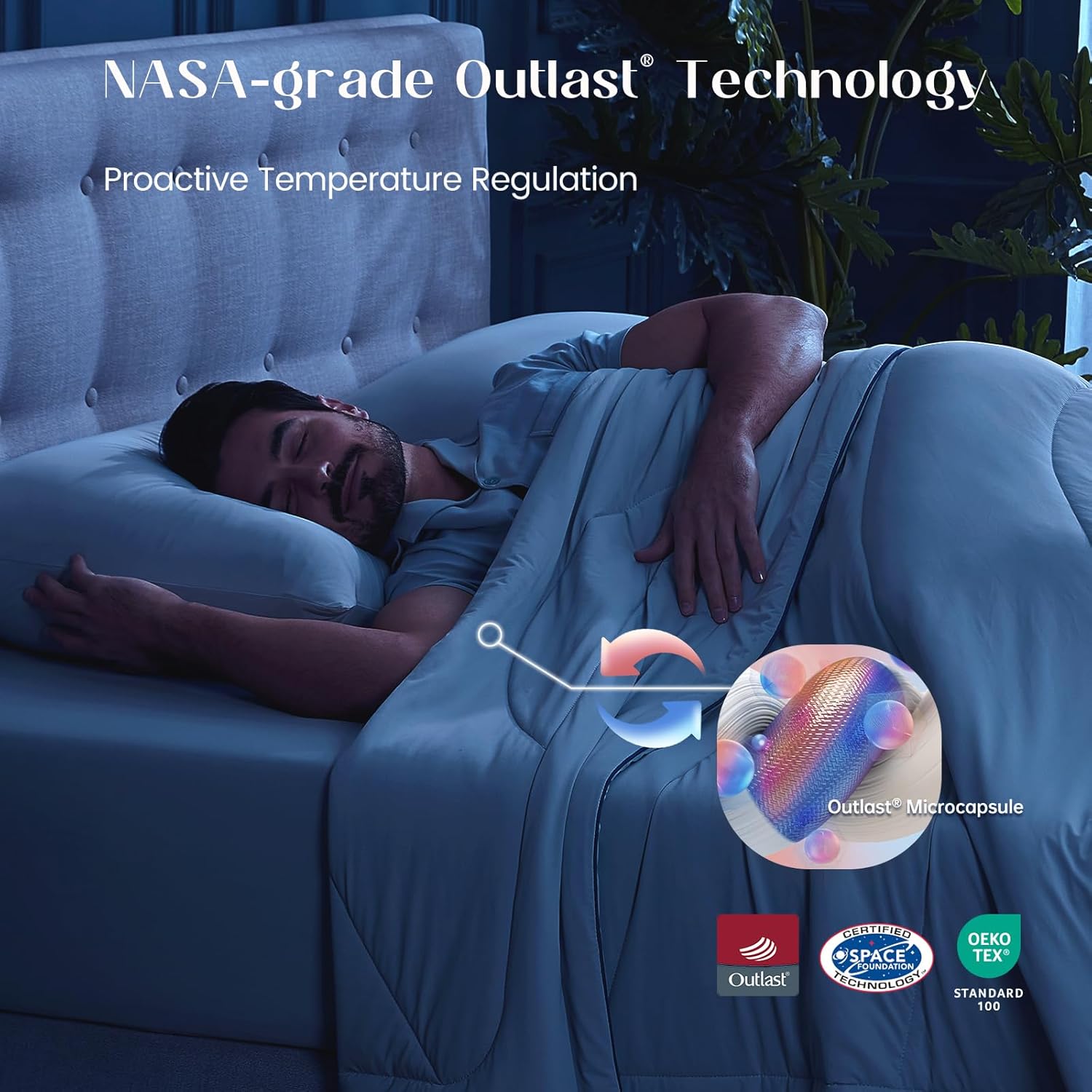 【Adaptive Temperature Regulation】Originally developed for NASA, Outlast cooling comforter proactively absorbs, stores and releases heat to keep a stable micro-climate. Say goodbye to nighttime overheating and sudden chills for uninterrupted deep sleep.