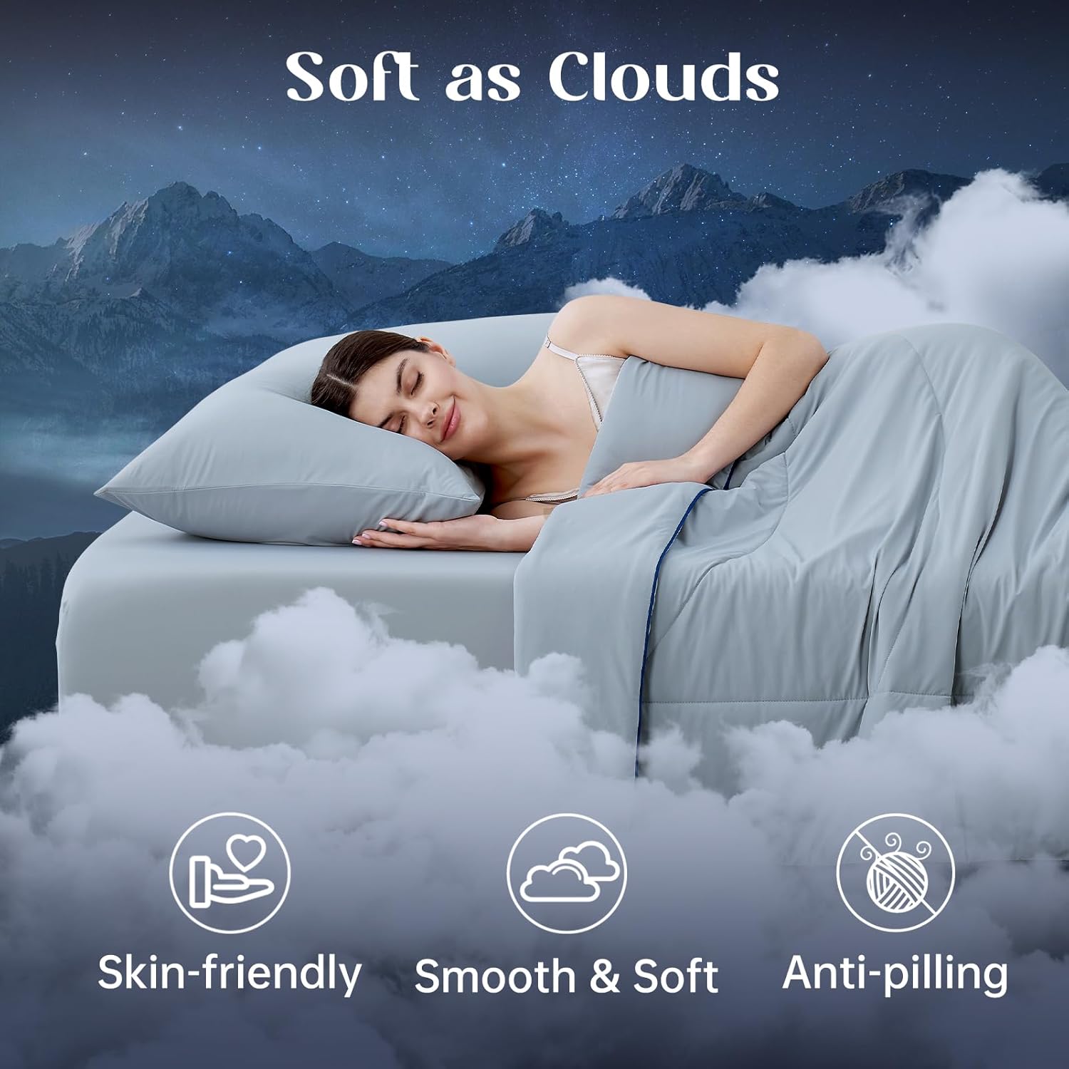 【All-Season, Deeper Sleep】Balanced loft for breathable warmth in winter and lightweight comfort in summer, helping your body stay in the ideal sleep temperature for truly restorative deep sleep.