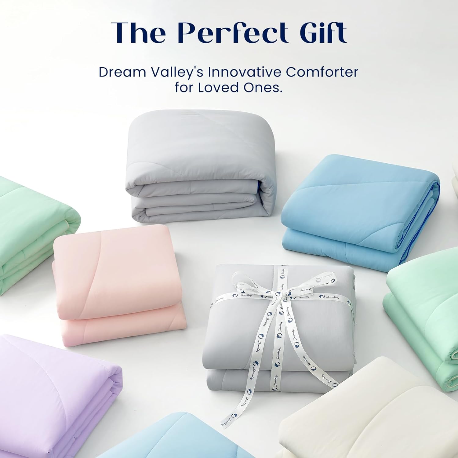Dream Valley® Queen Comforter, Ultra-Soft & Cozy Down Alternative Comforter with NASA-Inspired Outlast® Technology, Temperature Regulating All-Season Lightweight Blanket, Grey, 90″x90″