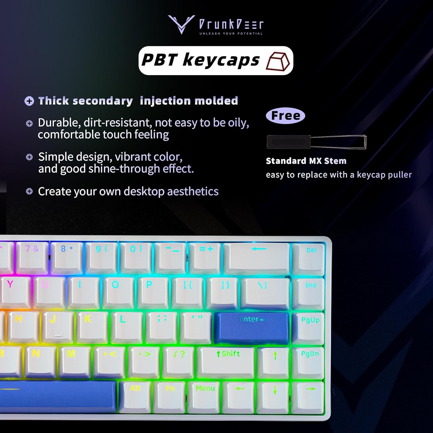DrunkDeer G65 Rapid Trigger Mechanical Keyboard Magnetic Switch Gaming PBT Keycap Wired 65% Size RGB TKL Compact Anti-Ghost White