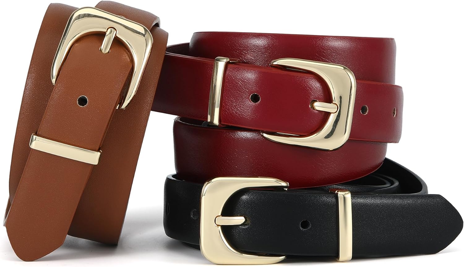 The newest design belts for are simple, but we design a special color-Beige; Not really beige, a bit of like a mix champagne and beige; The classic black and brown belts also can be your choice; If you just want a simple cute belt to add to your outfits and this is great; It holds sturdy in place and serves as the consummate belt for you
