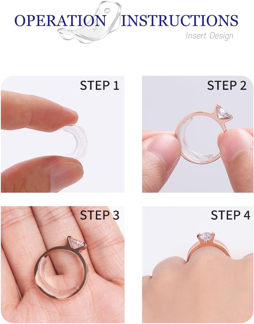 Easy To Use.The bottom of the ring adjuster is wider than your ring and is pressed inside the ring, Suitable for men’s and women’s rings from 1mm-9.5mm in width.
