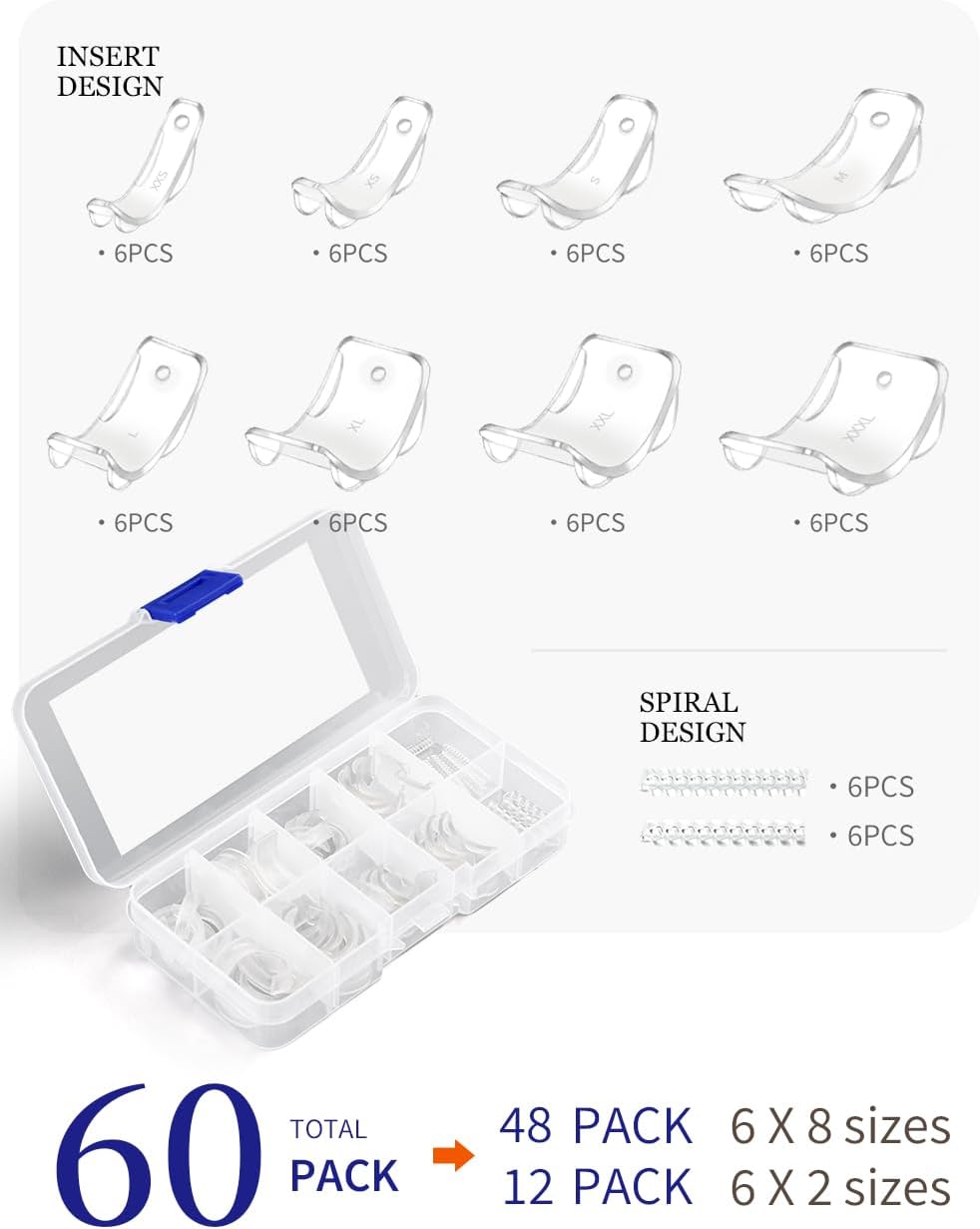 Package Includes: 12pcs ring size adjuster (spiral design), 48pcs ring adjuster pads (insert design), 1 x Ring Adjuster Organizer.